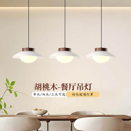 黑胡桃木餐厅灯吊灯三头玻璃北欧led餐桌饭厅灯现代中式吧台灯具