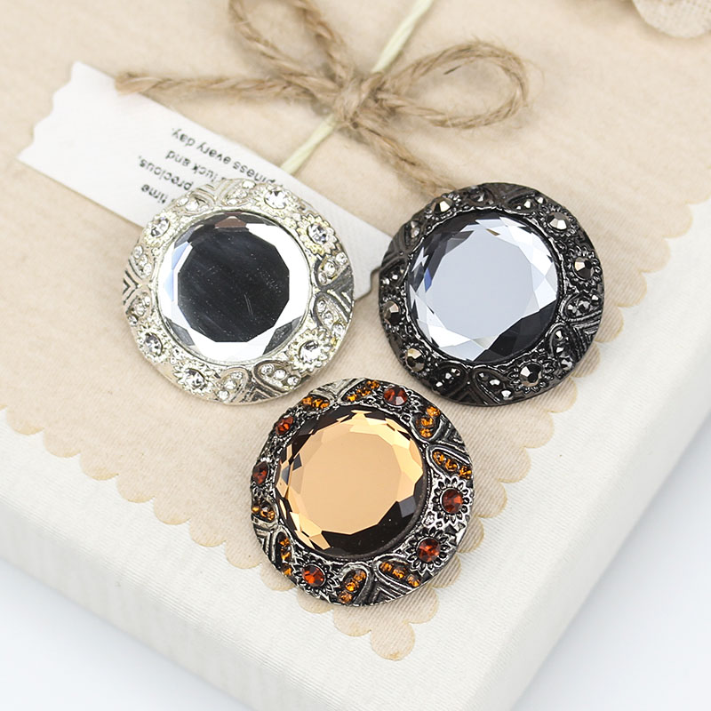 黑色高档水晶扣羊绒毛呢大衣纽扣皮草扣子圆形水钻金属装饰扣女