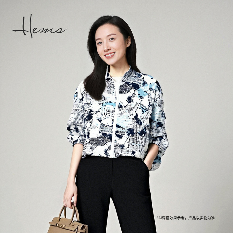 海尔曼斯春夏新品城市探索系列轻薄桑蚕丝防晒印花外套女24634C6F