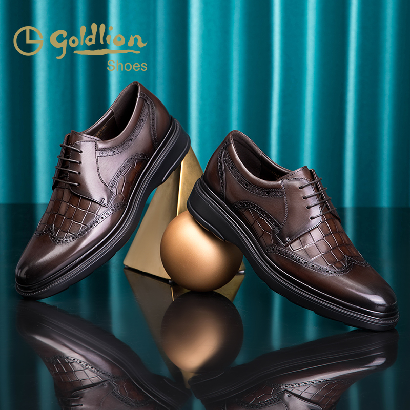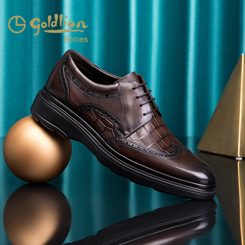 金利来皮鞋 新款秋季真皮压花布洛克皮鞋英伦都市商务正装皮鞋男