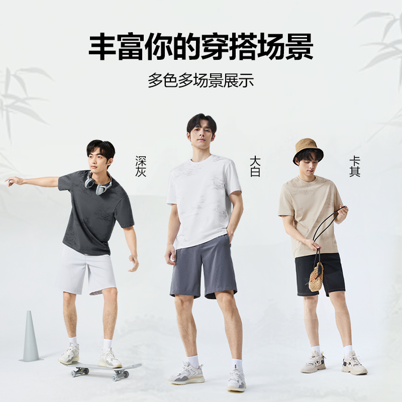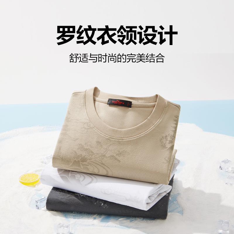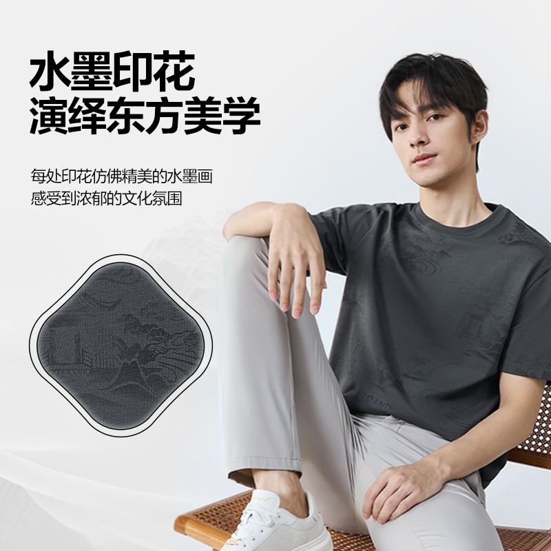 【国风图案】柒牌短袖T恤男士夏季新品水墨印花国潮圆领休闲上衣