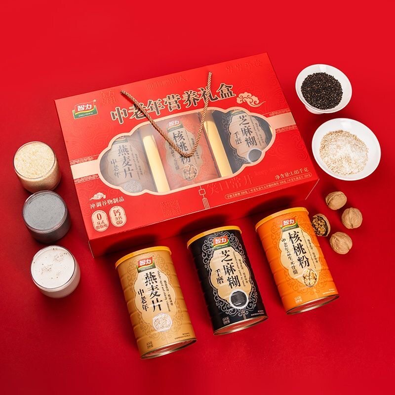 智力中老年牦牛骨髓核桃粉营养礼盒高档送礼品1050g燕麦高钙麦片