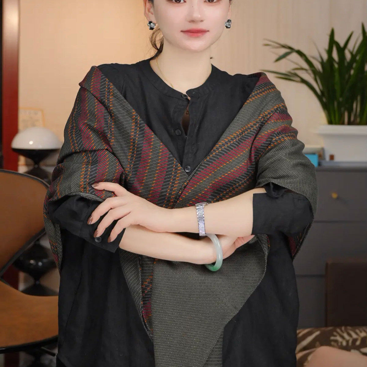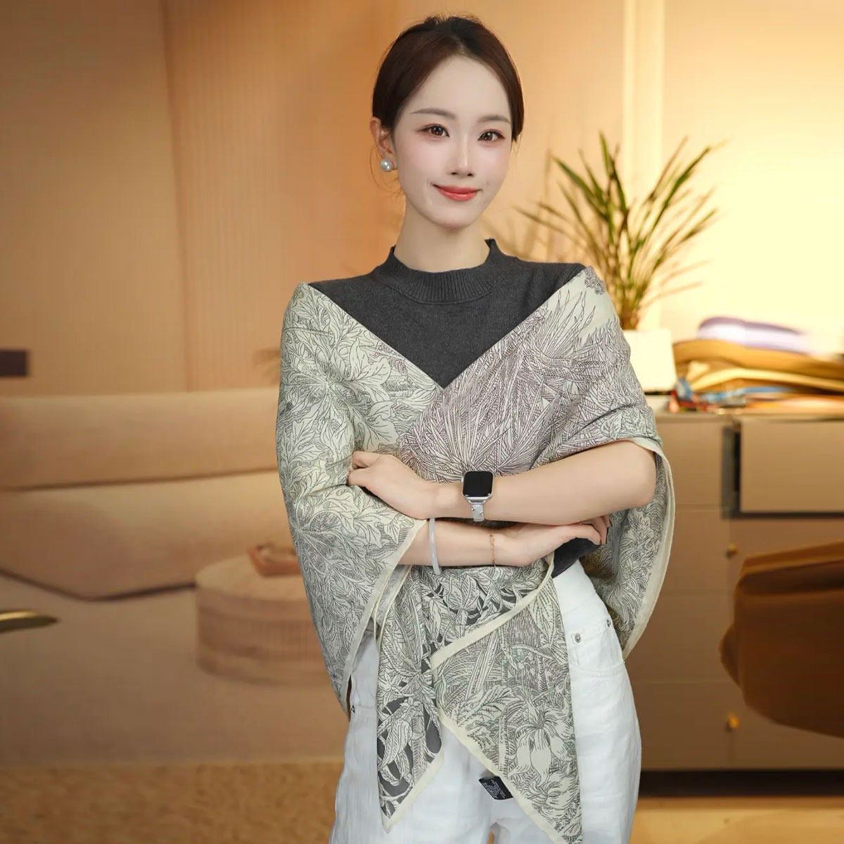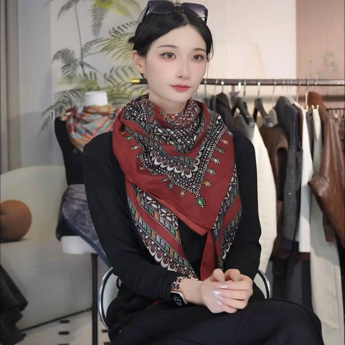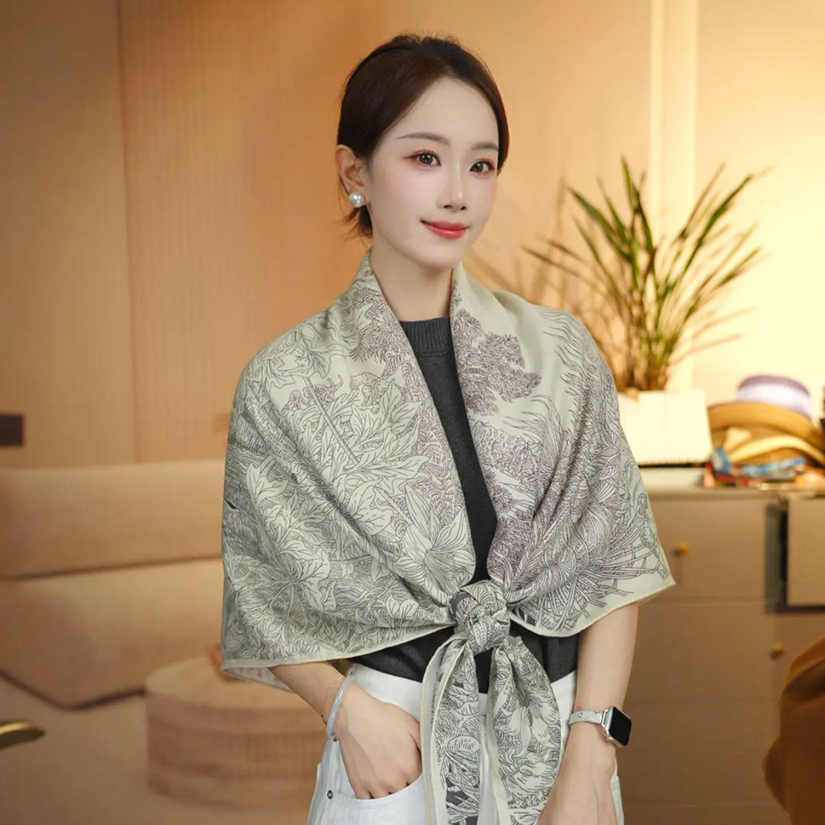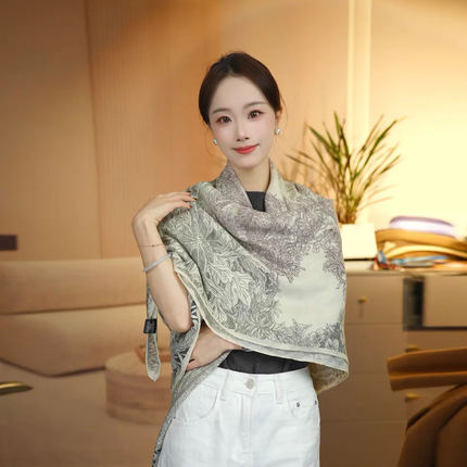 里斯本语针织丝毛大方巾围巾保暖披肩手工卷边尺寸135*135高级灰