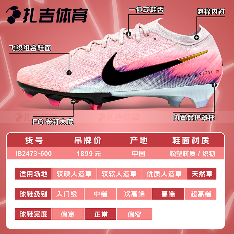 扎吉体育NIKE耐克刺客16 ELITE FG高端长钉真草足球鞋IB2473-600