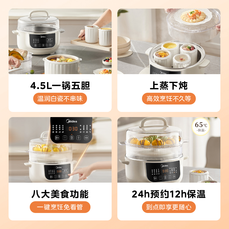 美的电炖盅隔水炖家用全自动陶瓷电炖锅煲汤锅养生汤料理机烹饪机