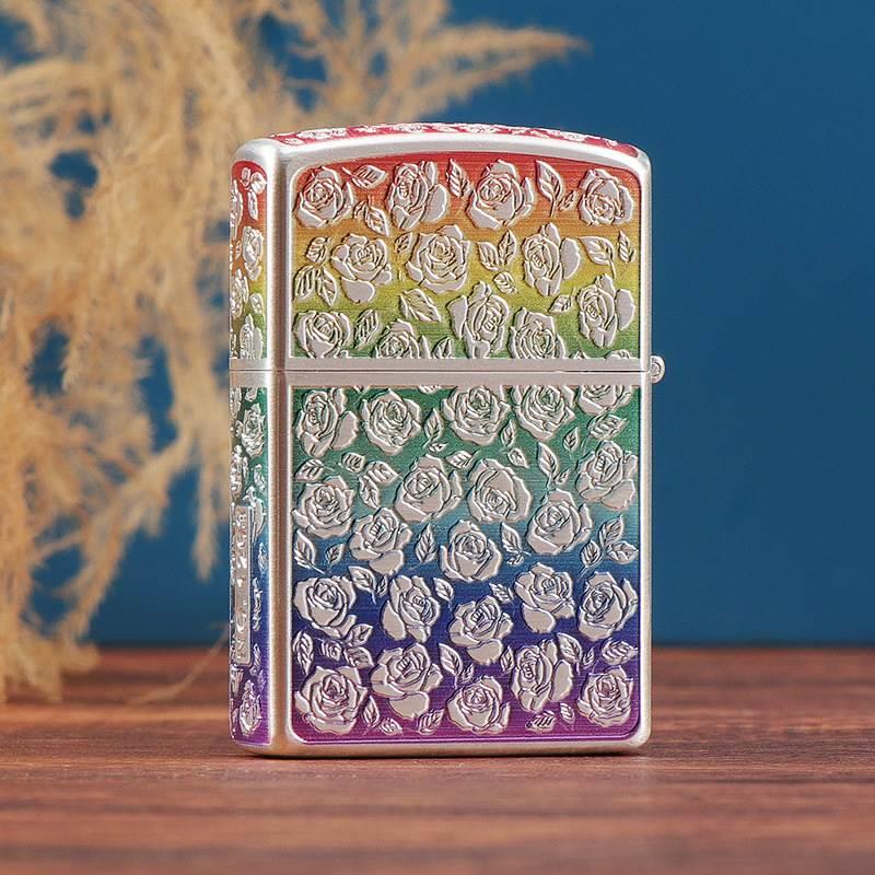ZORRO佐罗 镀银彩虹玫瑰99朵玫瑰煤油防风打火机二代升级版打火机