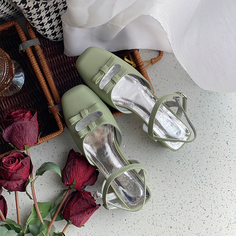 夏清仓专享春夏仙女风方头气质粗跟蝴蝶结玛丽珍鞋女甜美凉鞋