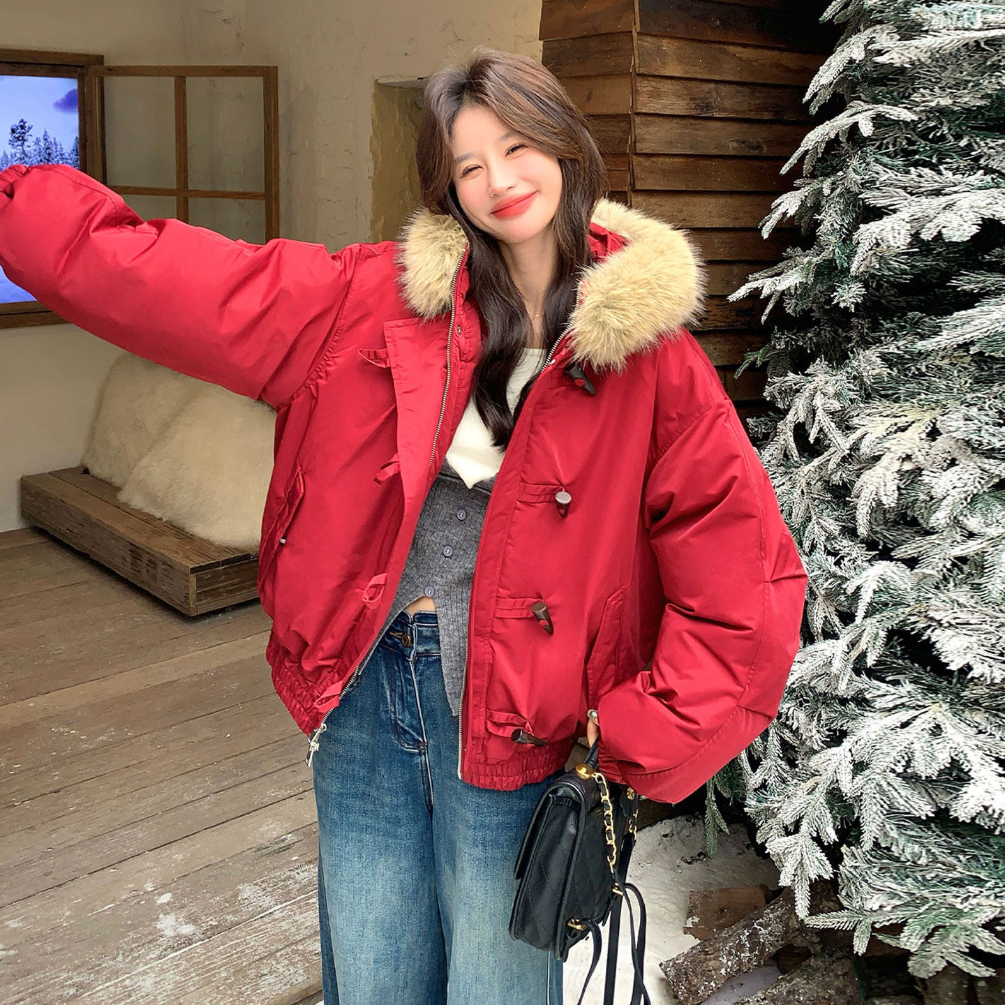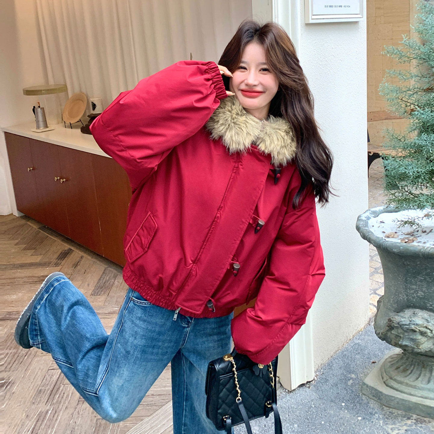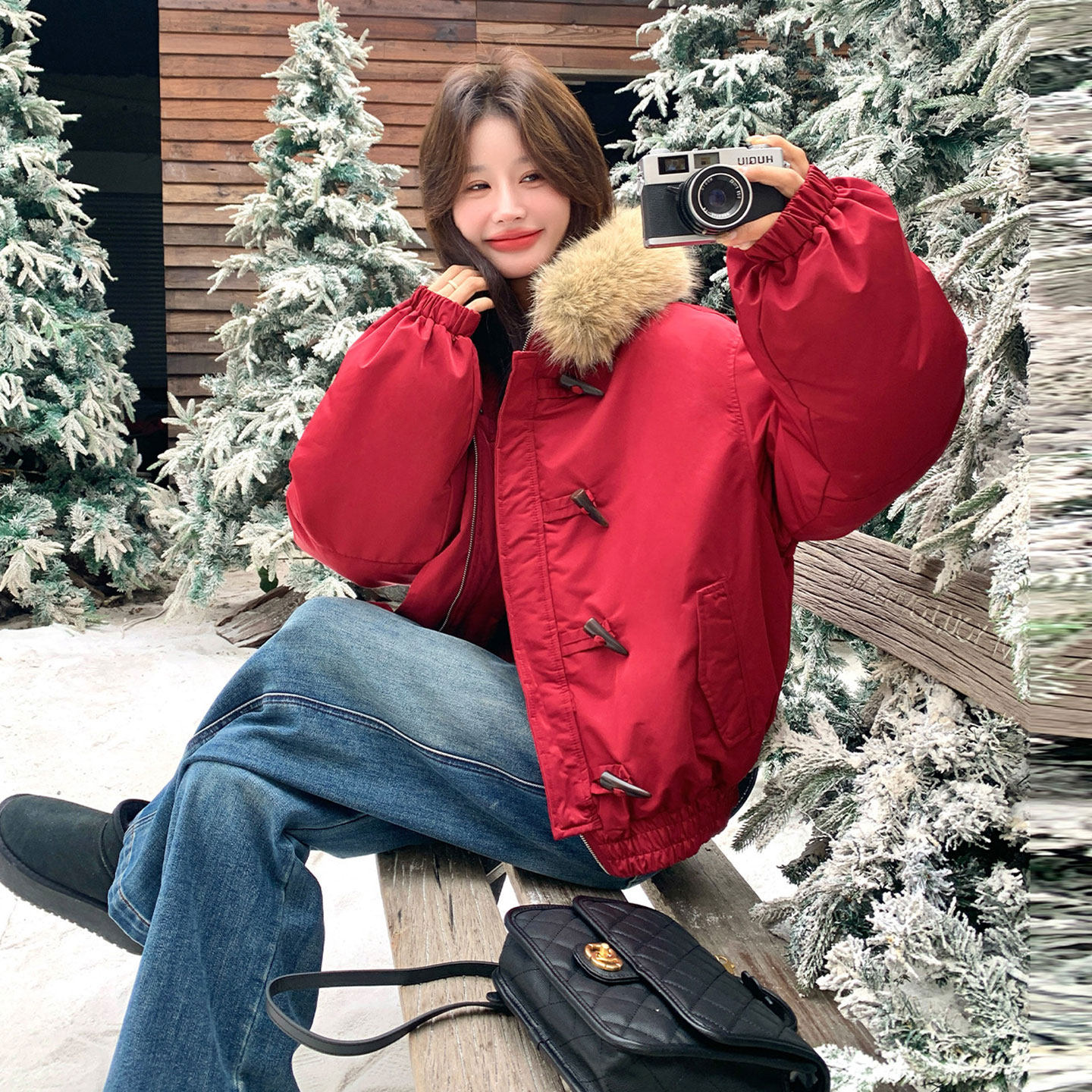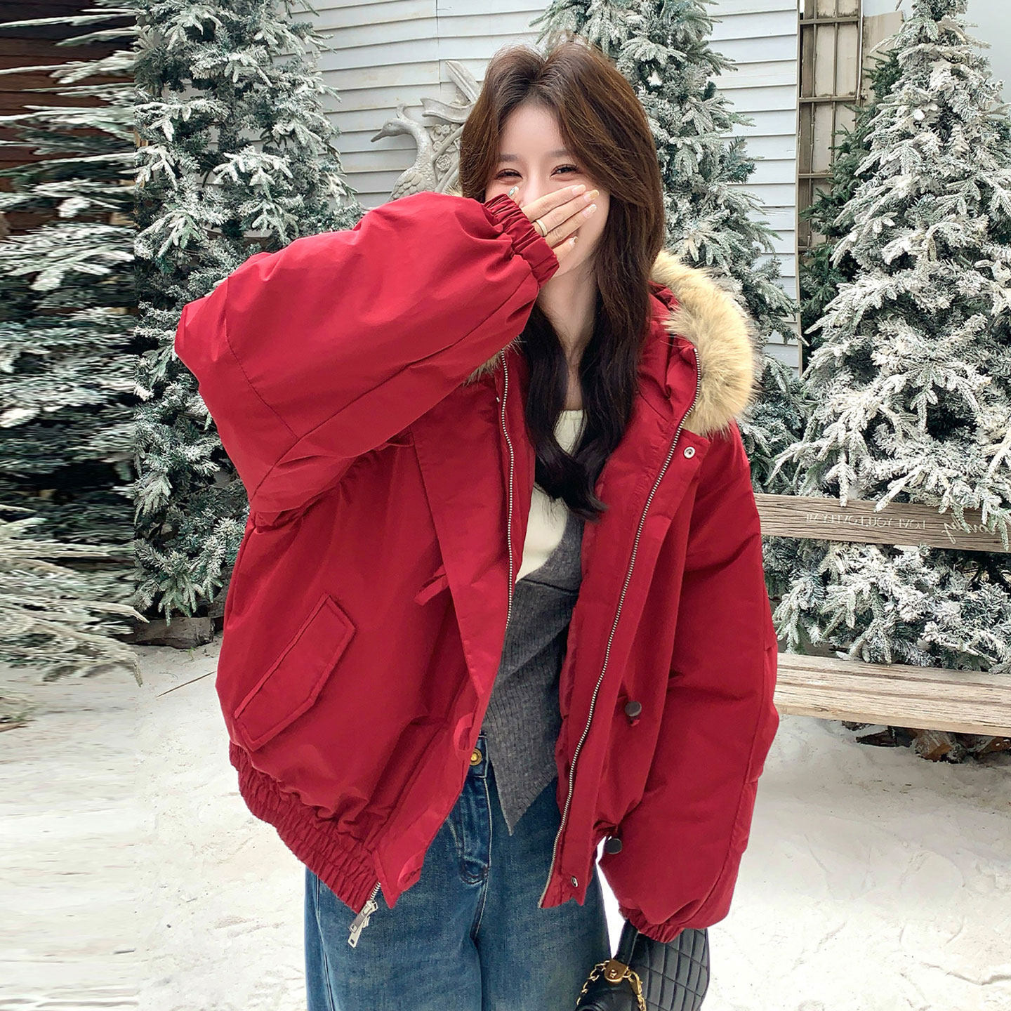 300斤大码女装加厚保暖红色外套女胖mm韩版高级感ins宽松显瘦棉服