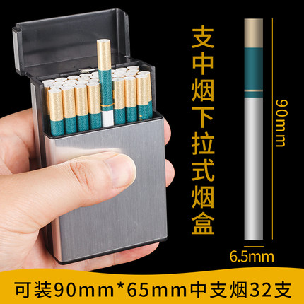 6.5中支烟盒32支装下拉弹盖便携塑料个性大容量 中支烟盒男士防压