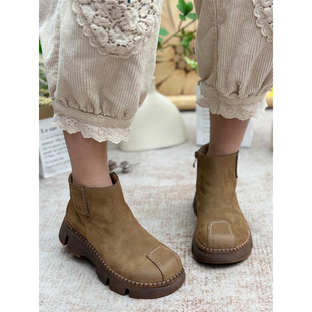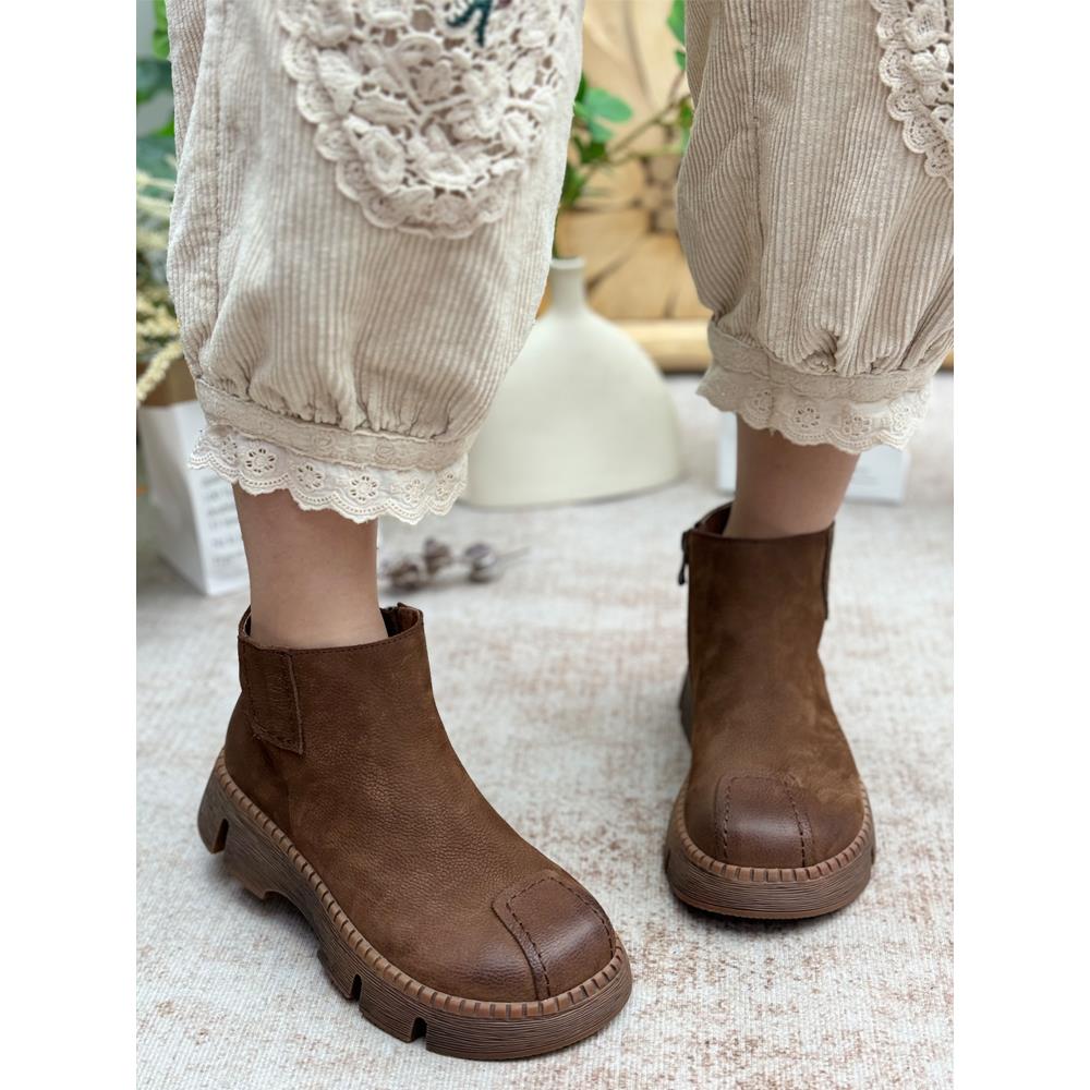 手工真皮马丁靴复古休闲2025新款短靴子松糕厚底女鞋短筒单靴