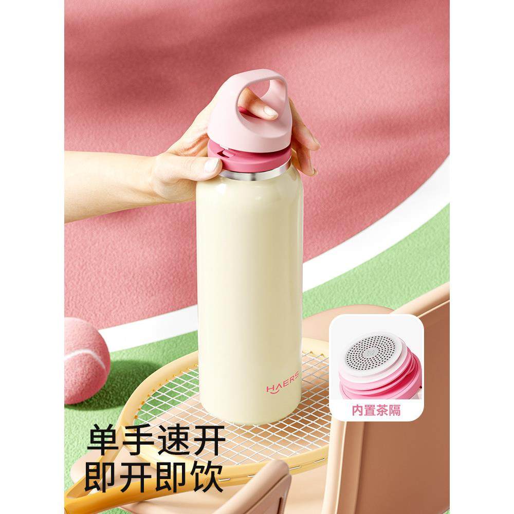 哈尔斯保温杯水杯女生高颜值不锈钢便携随行运动新款茶水分离杯子