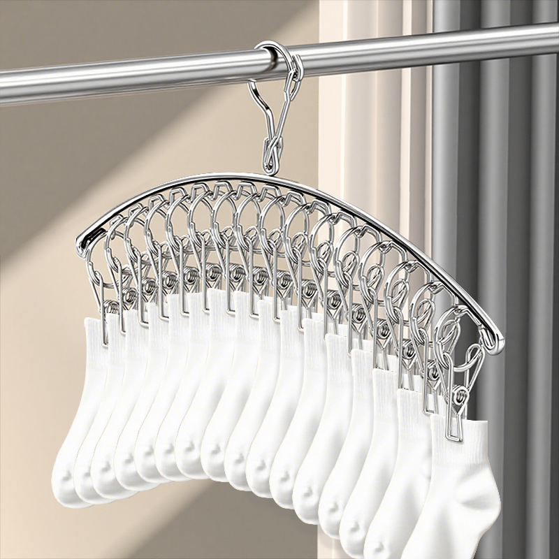 妙然多夹子晾衣架16夹不锈钢晒袜子内衣架学生宿舍阳台防风晾晒架