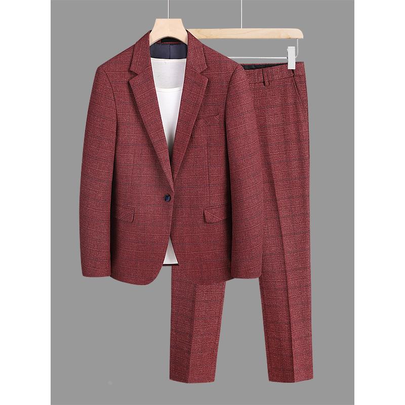 【维港奢雅男装】休闲西服套装男士春秋季新款韩版格子商务