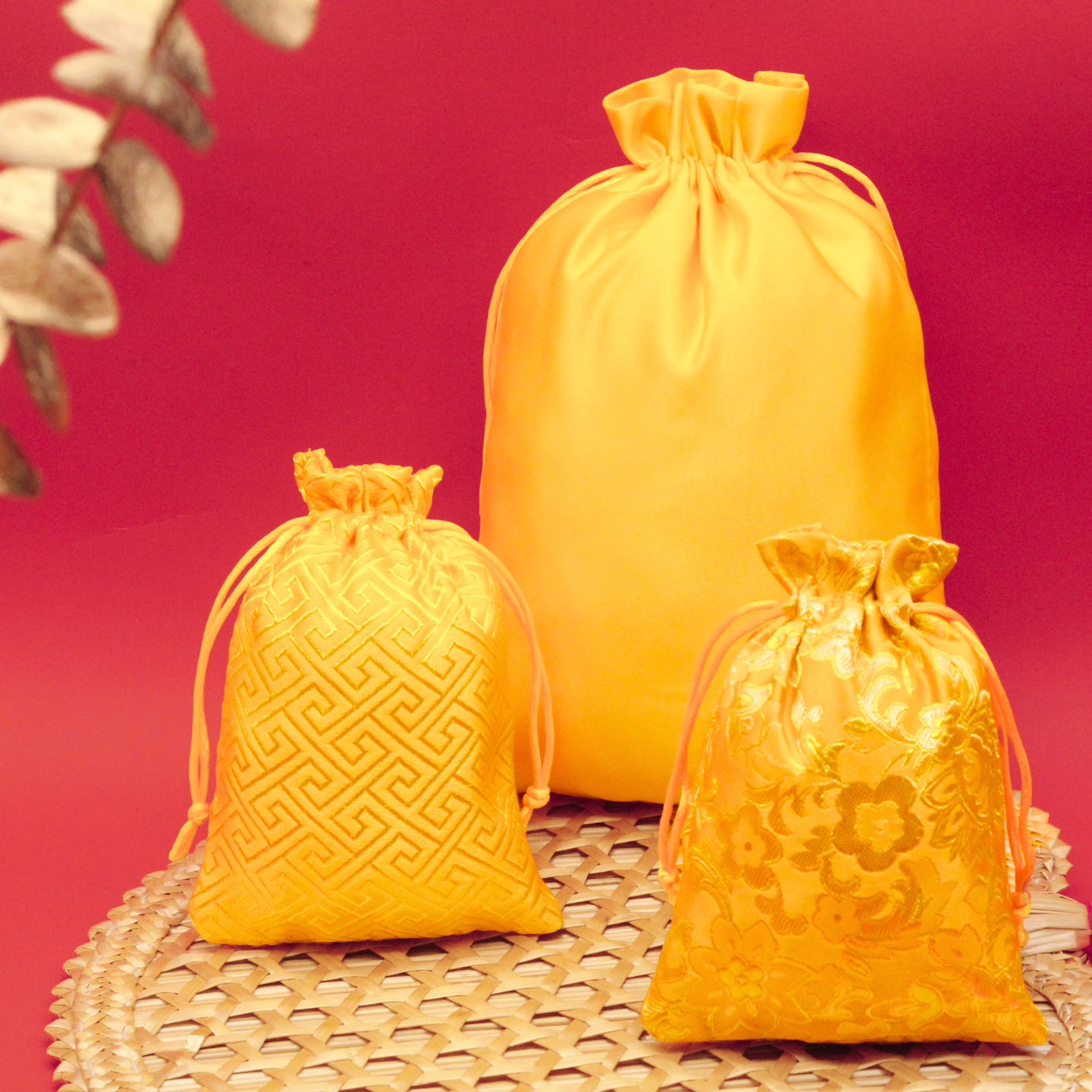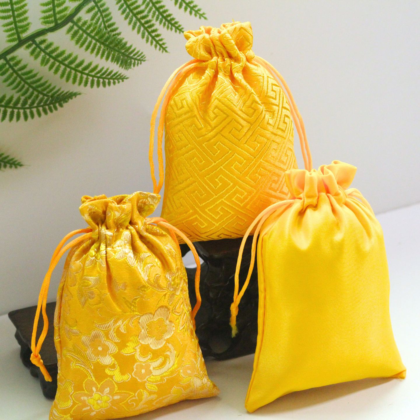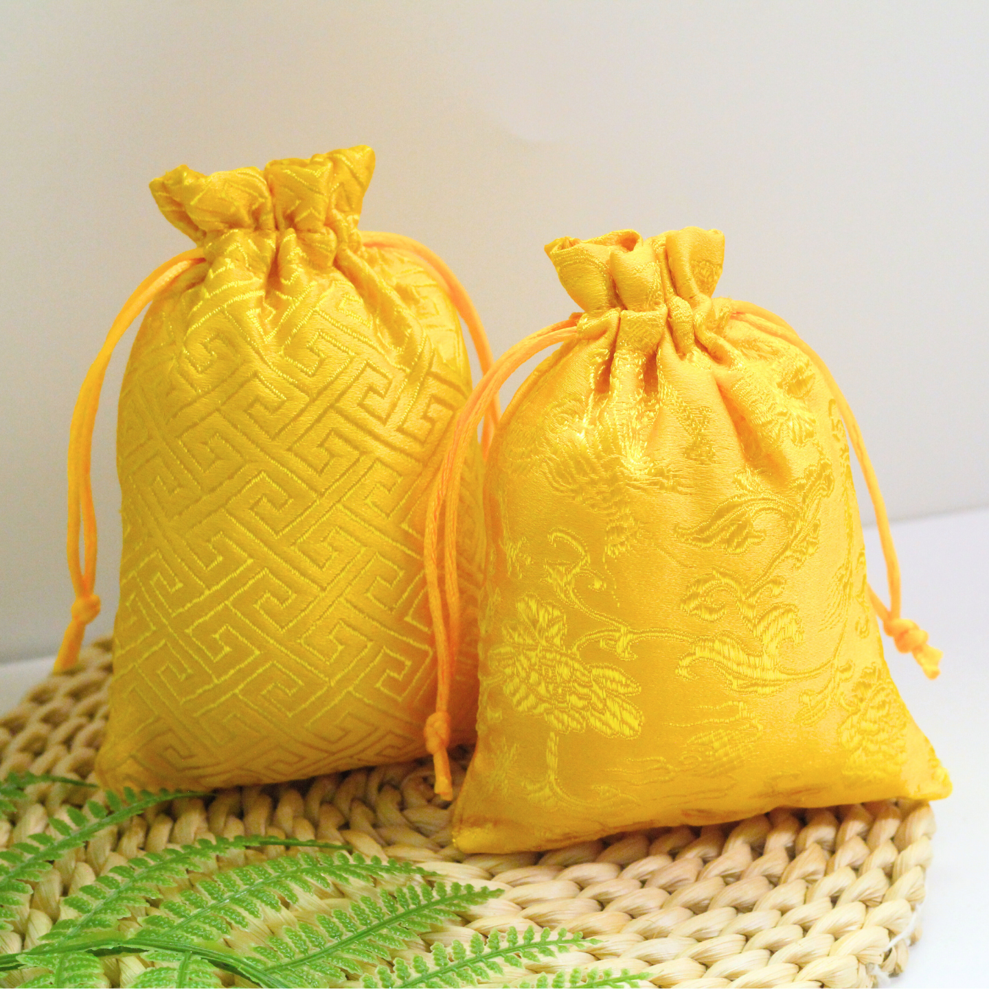 金黄色首饰袋织锦缎锦香囊束口袋喜糖五福临门收纳布袋可印LOGO