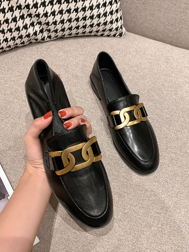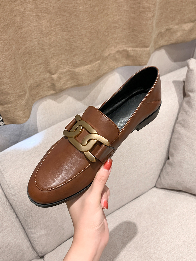 真皮乐福鞋女平底复古春秋季新款英伦软底小皮鞋中跟百搭粗跟单鞋