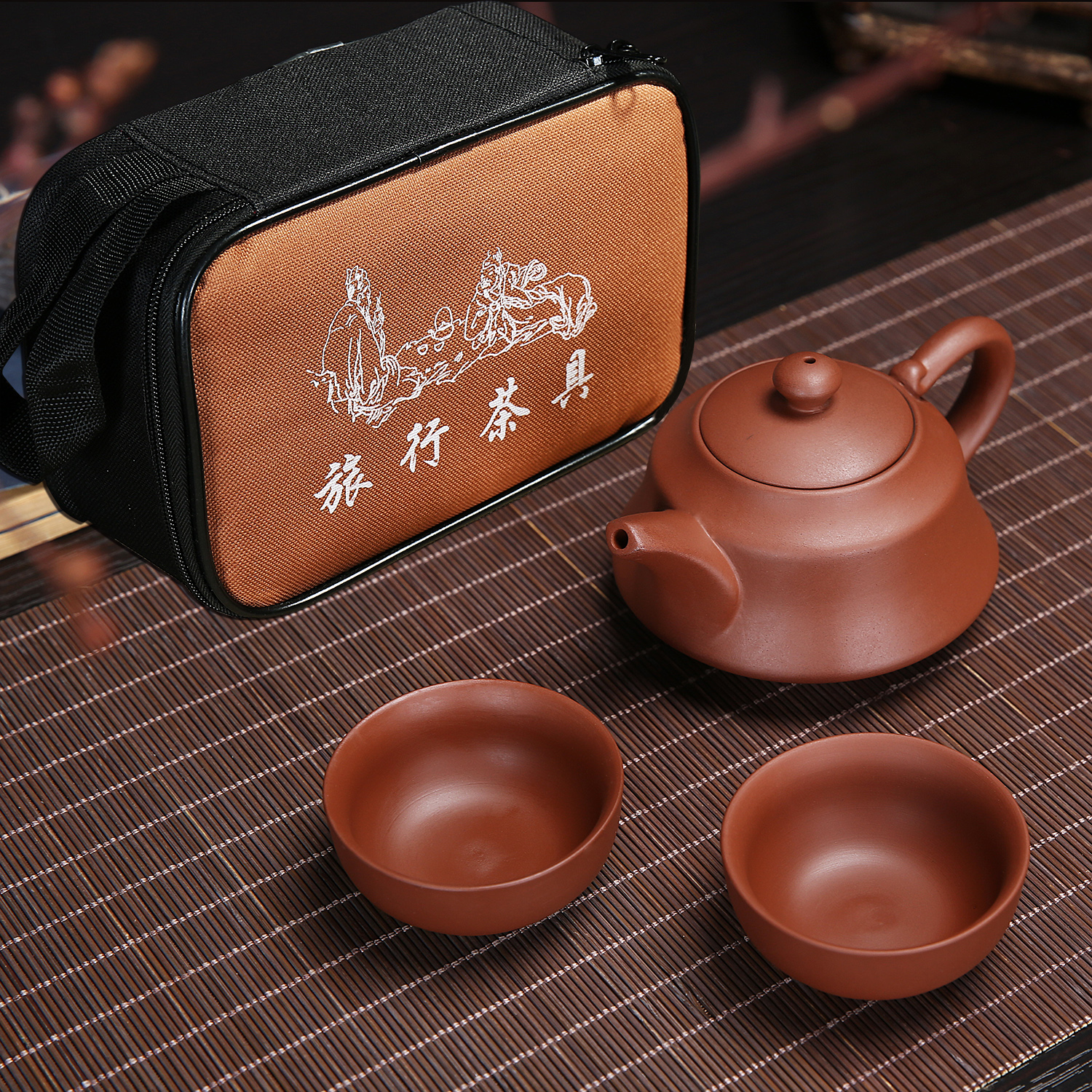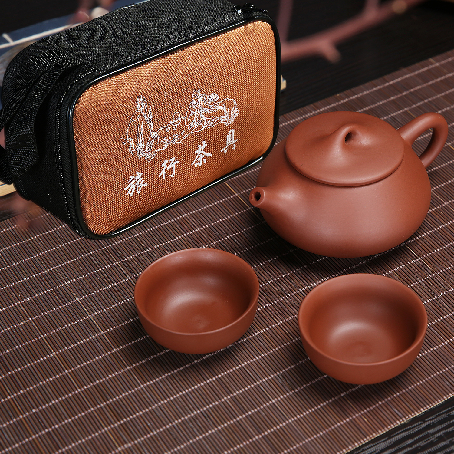 原矿紫砂壶一壶二杯 办公旅行功夫茶具便携式 泡茶壶红西施壶特价