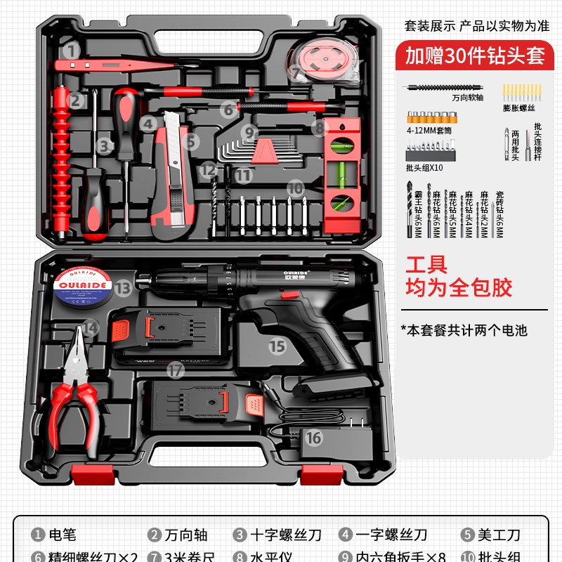 速发家用工具箱锂电钻充电式电钻转多功能电钻电动螺丝起子工具箱