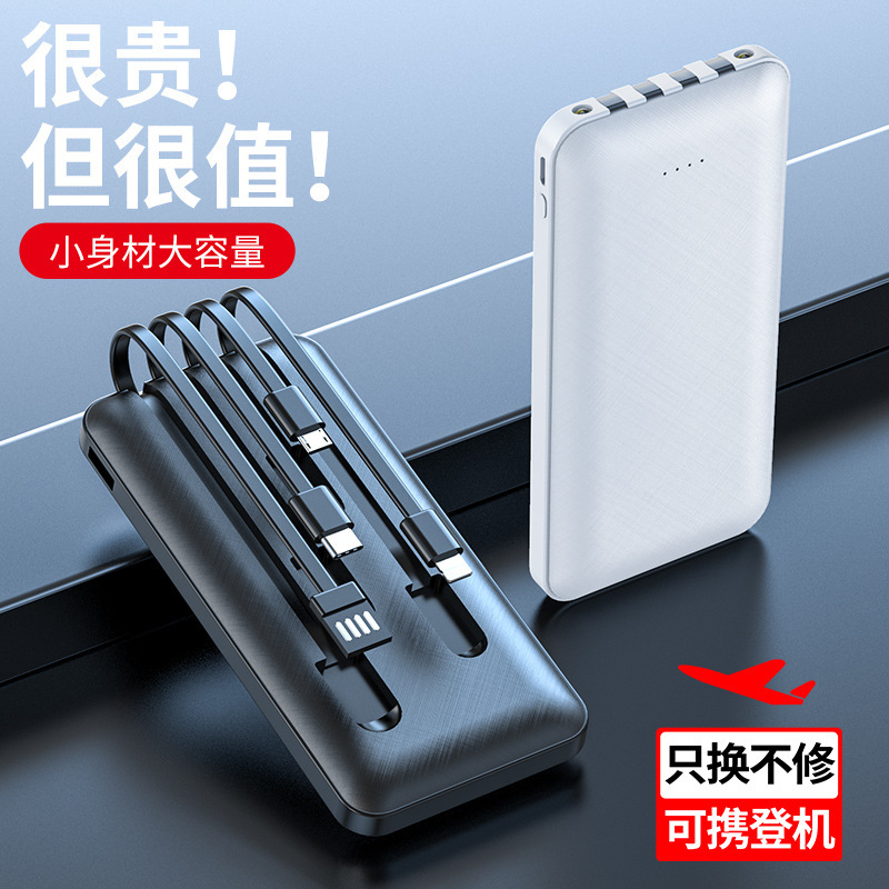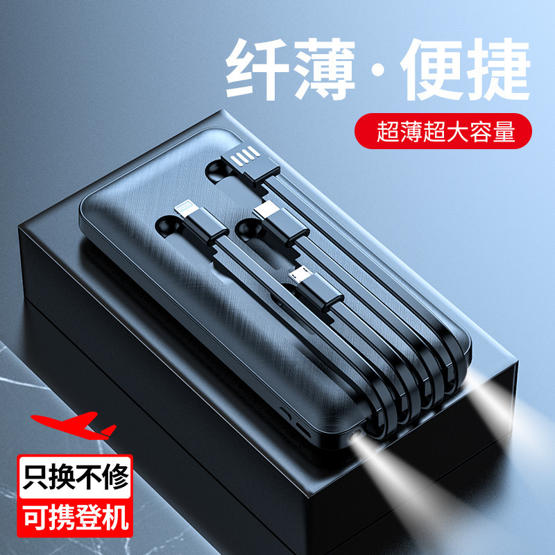 充电宝20000毫安自带线超薄大容量迷你小巧便携快充移动电源定 制