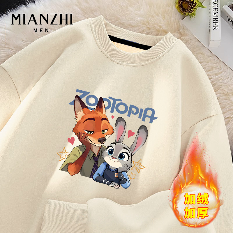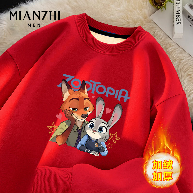 棉致迪士尼疯狂动物城酒红色情侣卫衣加绒朱迪尼克本命年跨年上衣