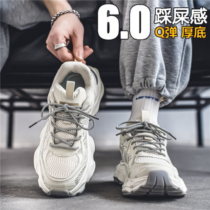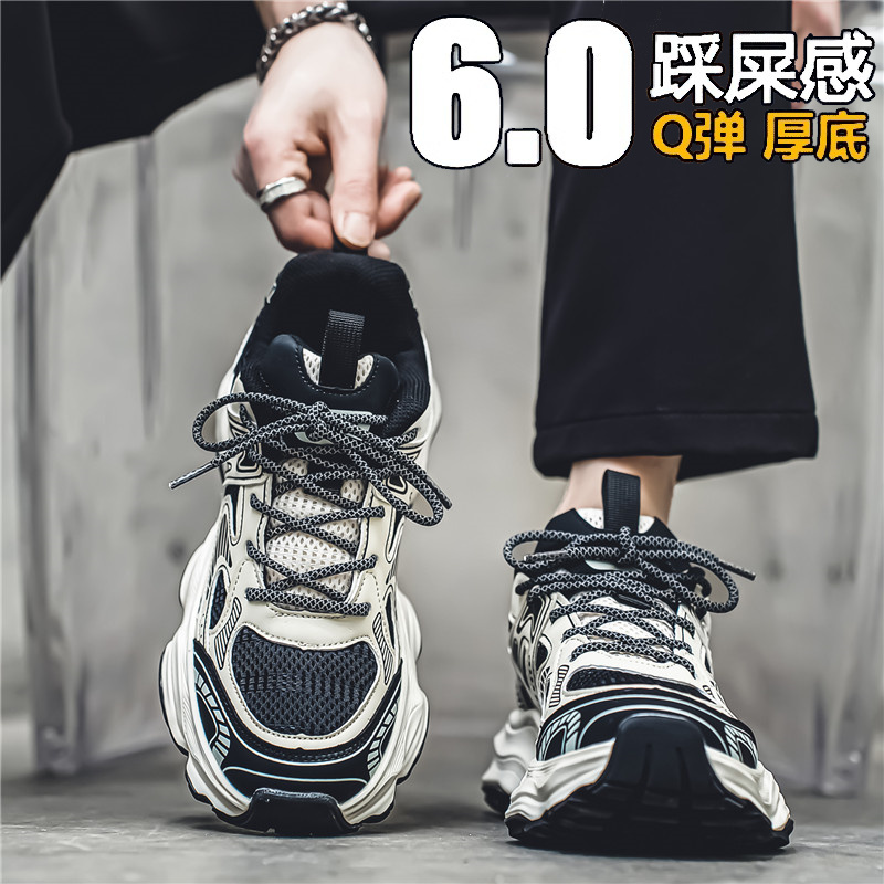 男鞋秋季潮流百搭透气网面踩屎感厚底老爹鞋休闲增高爆款运动潮鞋