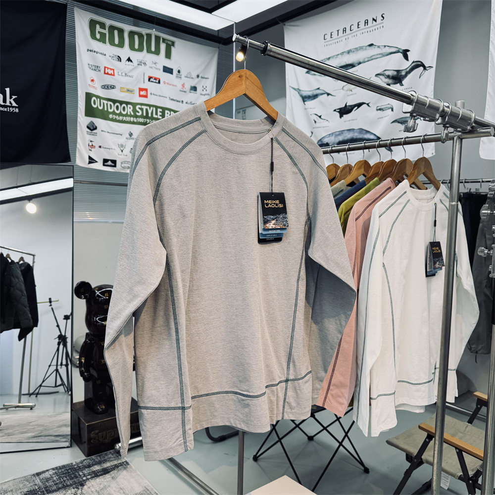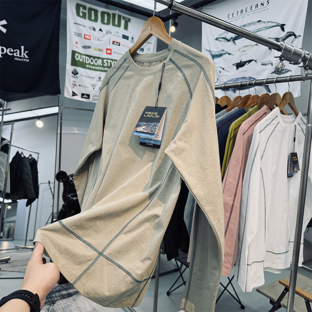 3D立裁撞色明线男女通用宽松户外机能棉感吸湿透气长袖速干T恤