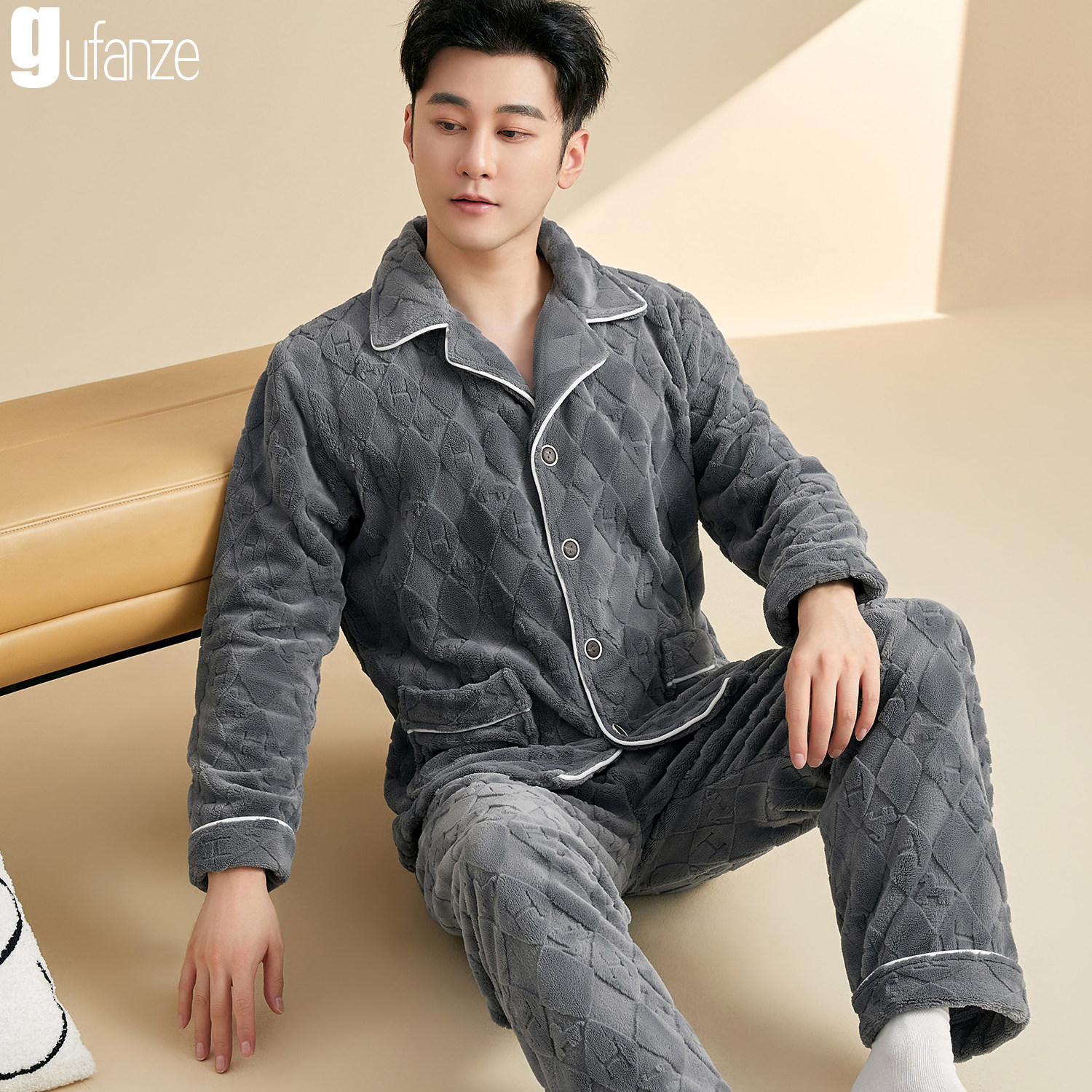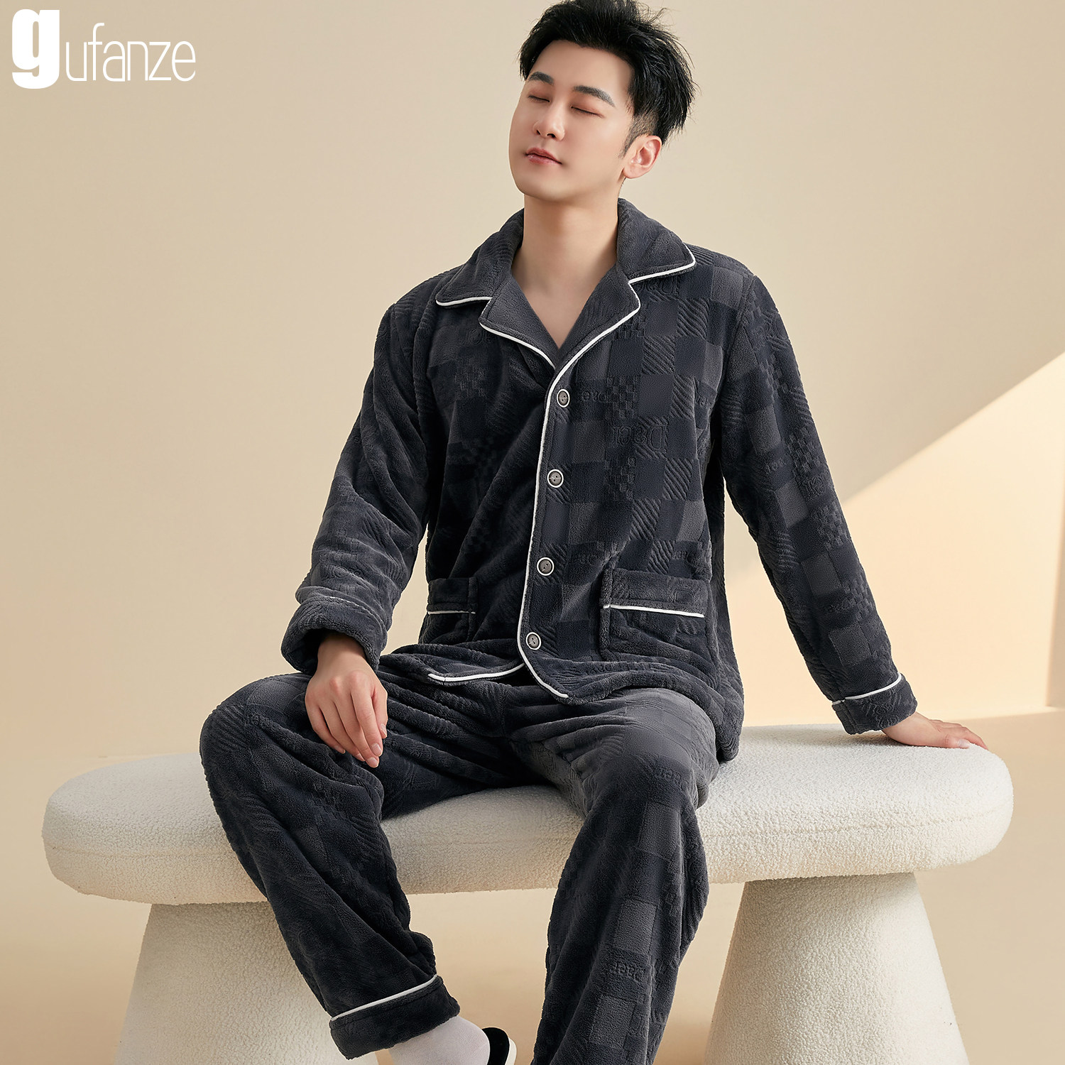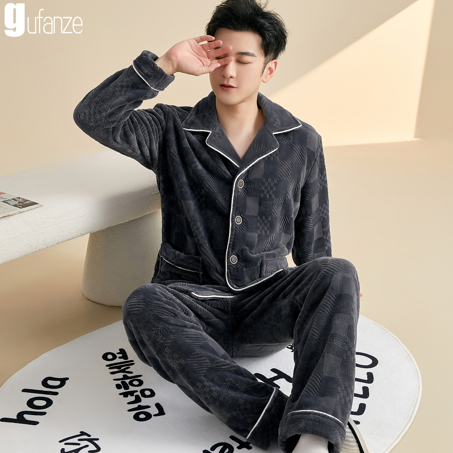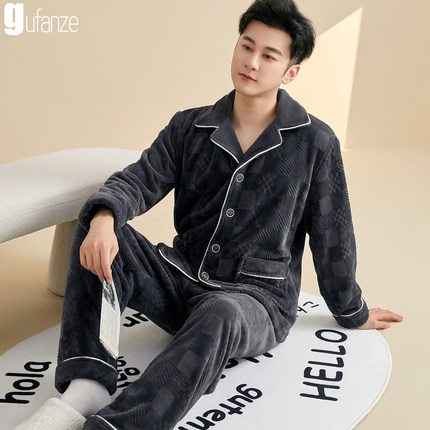 睡衣男士秋冬款冬季珊瑚绒加绒加厚保暖法兰绒家居服男款冬天套装