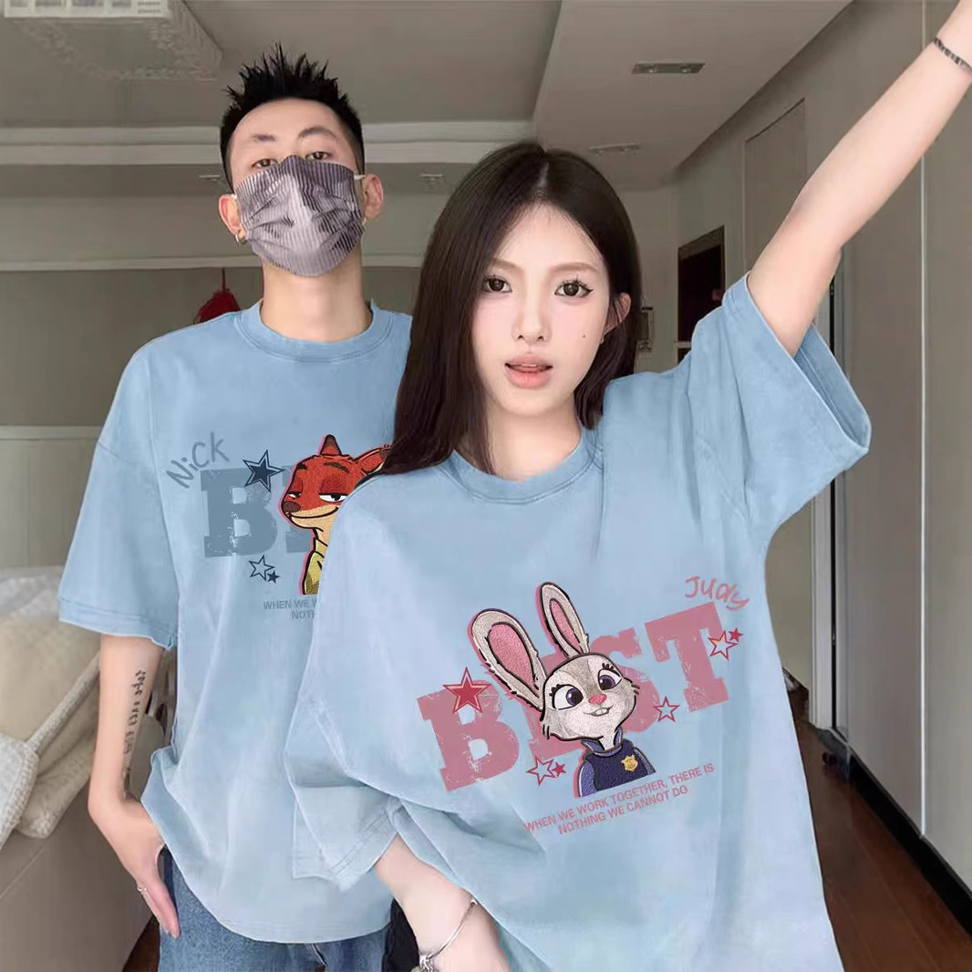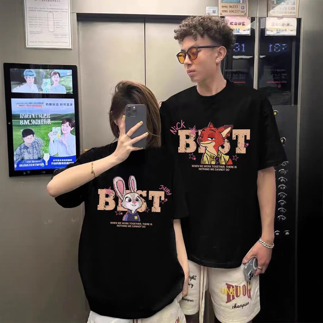 夏纯棉短袖T恤情侣装慵懒风宽松小众设计感男女上衣学生潮牌班服