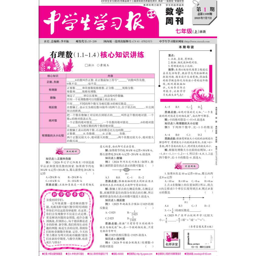 2025中学生学习报报纸上册下册24期订阅 初中生语文数学英语七年级人教北师沪科仁爱