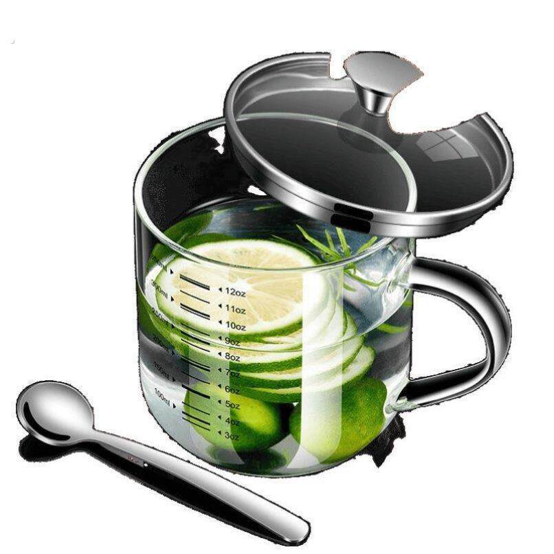 德国高硼硅玻璃双刻度杯子透明耐高温计量杯带盖茶杯喝水杯玻璃杯