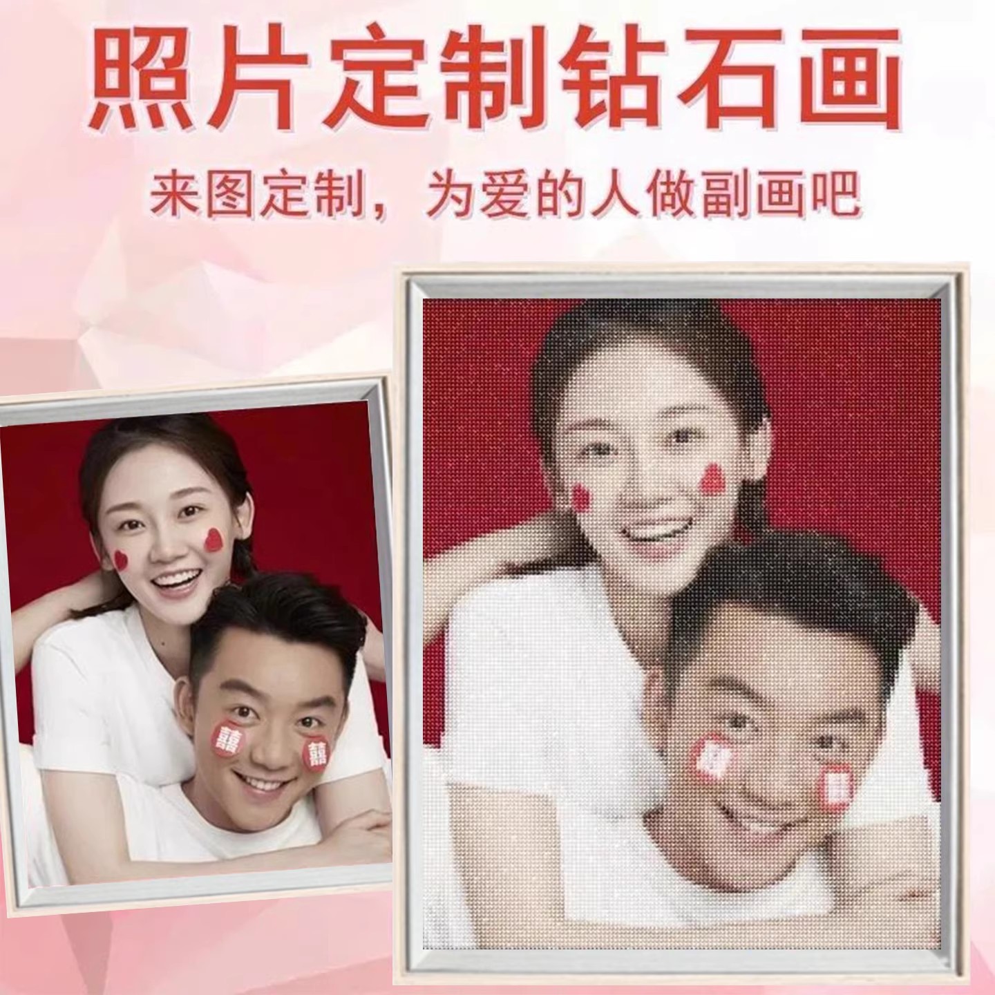 新款5D高清钻石画定制满钻真人照片手工diy方圆钻十字绣礼物