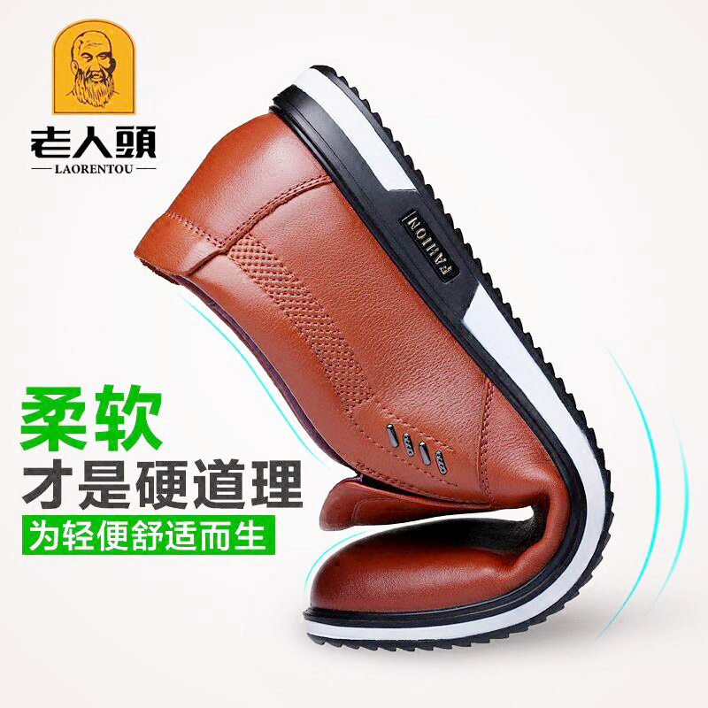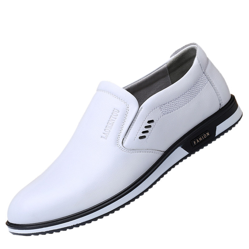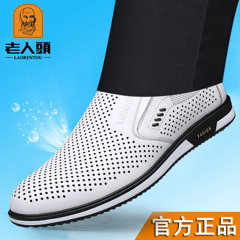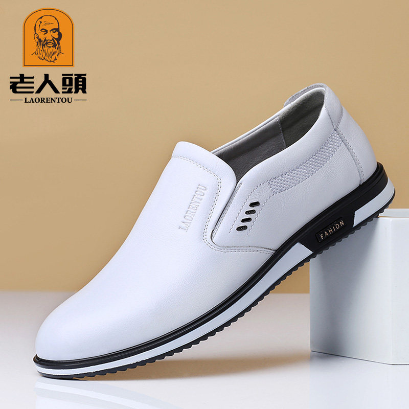 老人头皮鞋男春季真皮韩版小白鞋透气休闲皮鞋青年白色男鞋驾车鞋