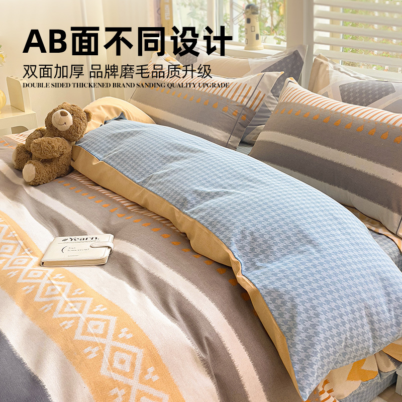 磨毛被套单件秋冬季加厚被罩全棉纯棉单人2024新款200x230四件套1