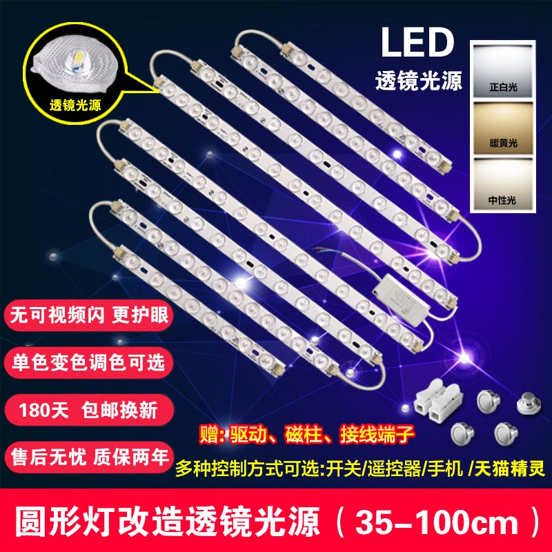 led吸顶灯改造灯板改装灯管灯条透镜光源灯珠板长条灯带三色变光