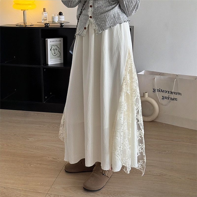 白色蕾丝半身裙春夏女大码胖mm显瘦设计感拼接a字长裙伯克利半裙