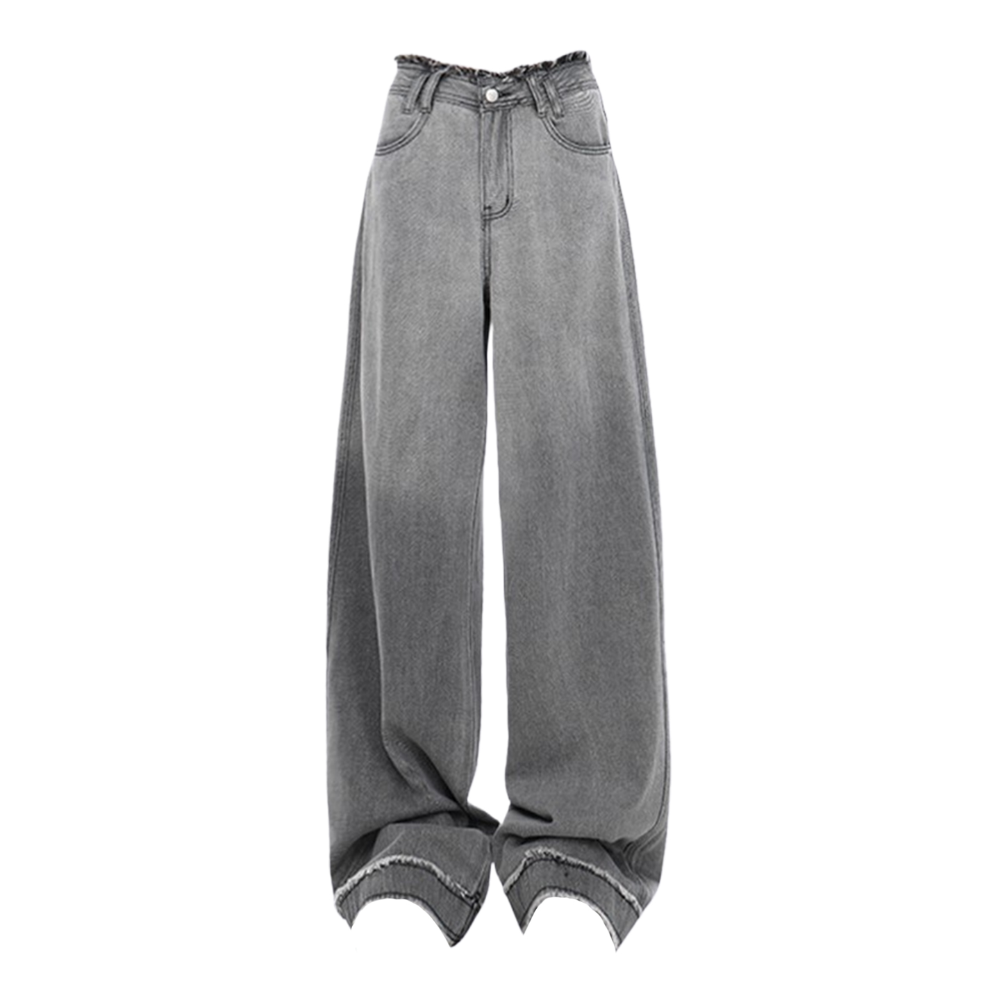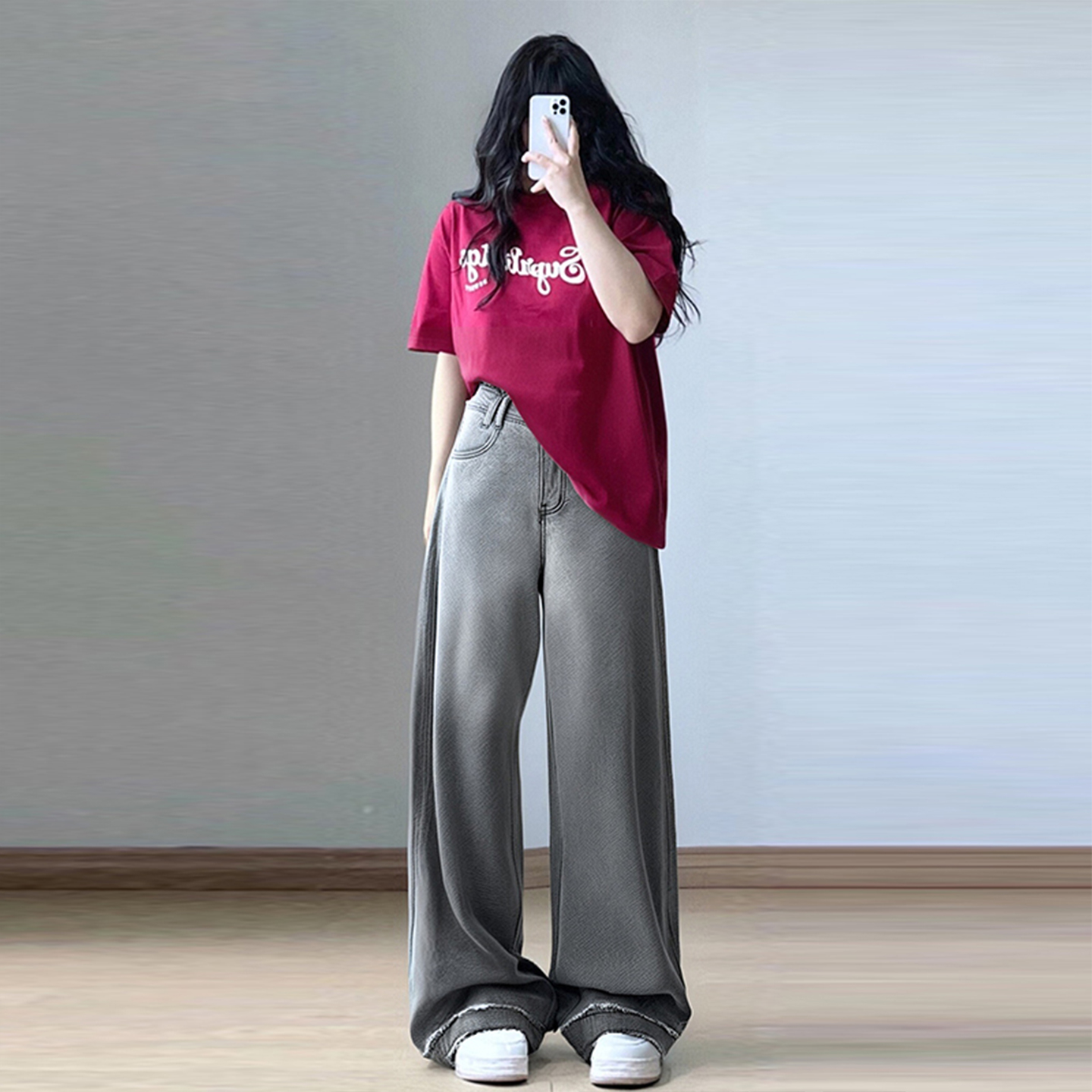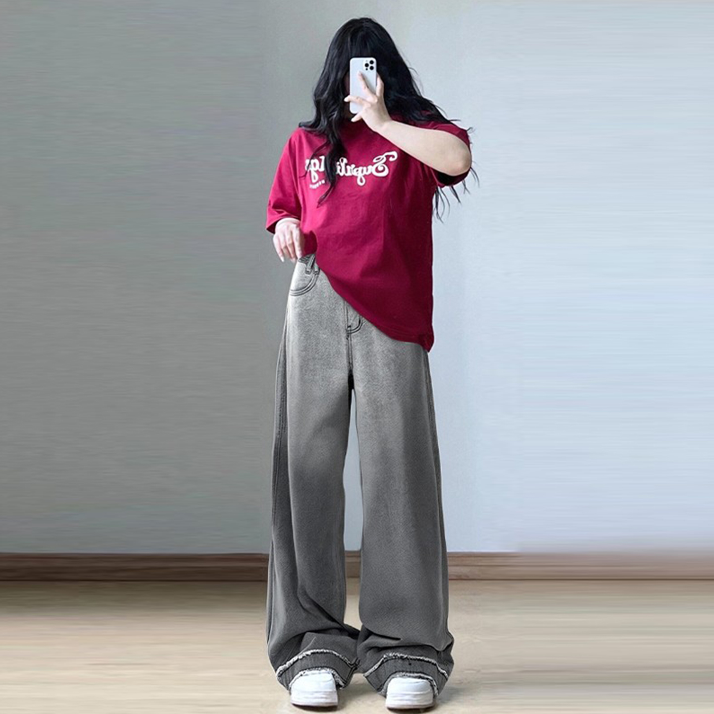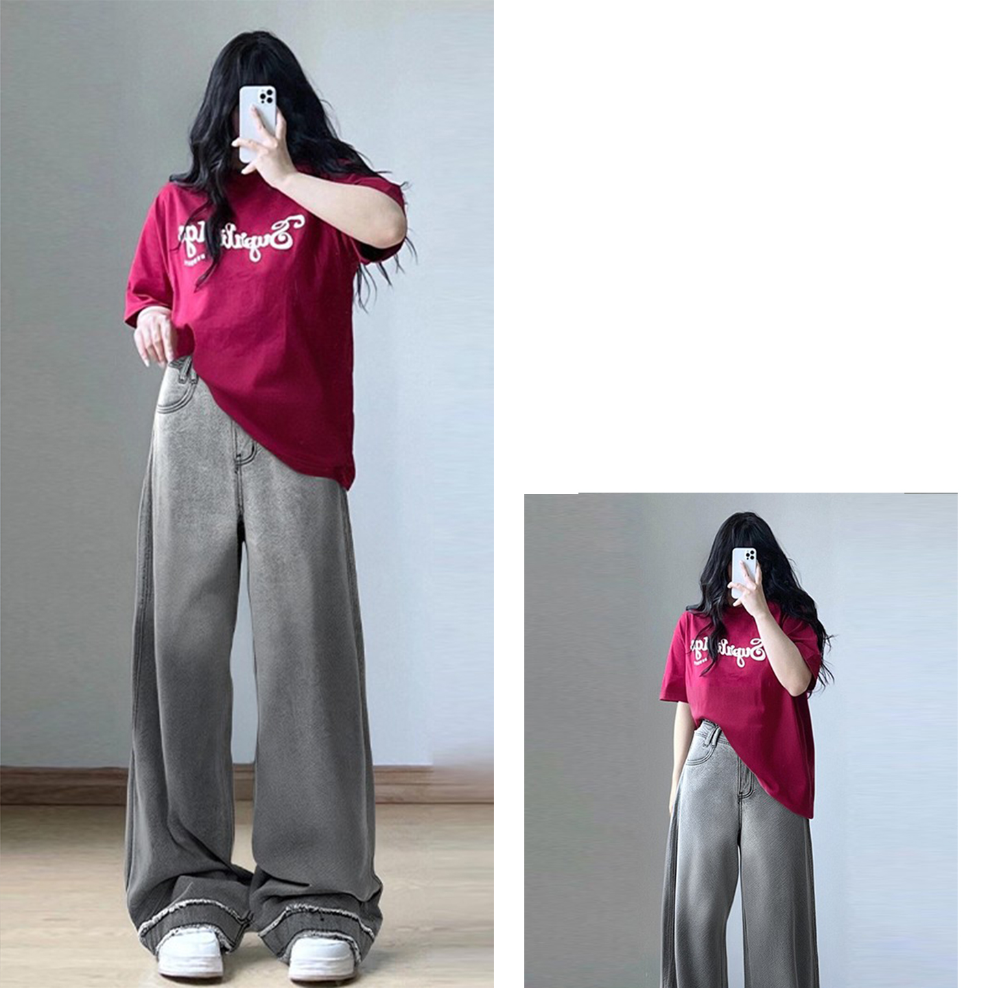 300斤大码女装渐变色阔腿牛仔裤女胖mm复古高腰宽松显瘦直筒长裤
