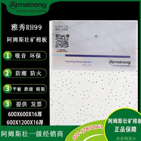 阿姆斯壮矿棉板雅秀吸音板600x600办公室吊顶微孔装饰天花板W1890