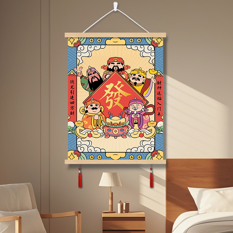 五路财神爷装饰画挂画客餐厅办公室卧室墙壁遮挡电表箱竖2025新款