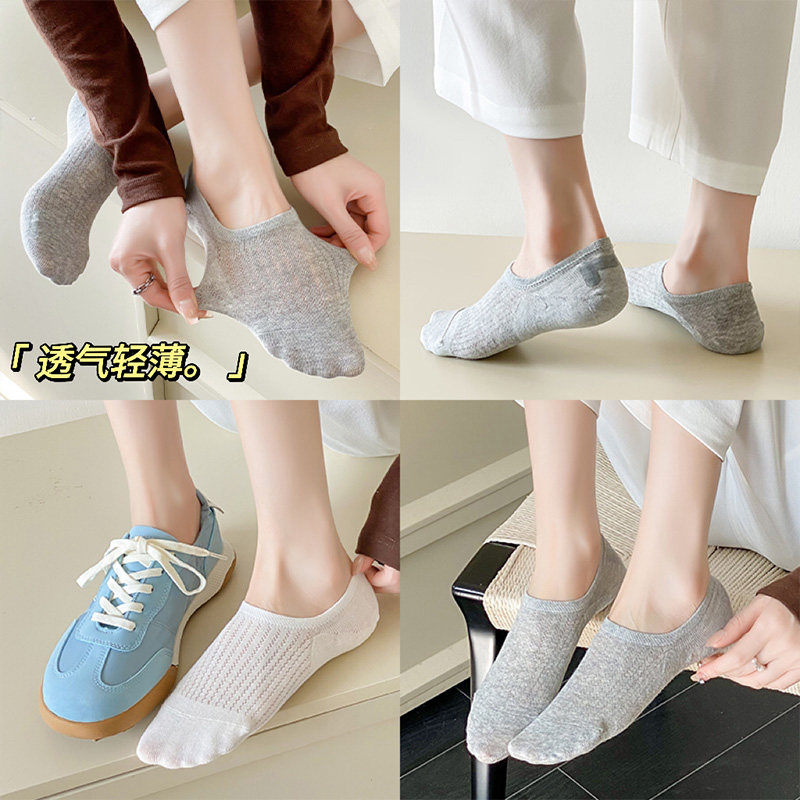 夏天隐形袜子女薄款女士夏季船袜纯棉浅口防滑网眼透气纯色不掉跟