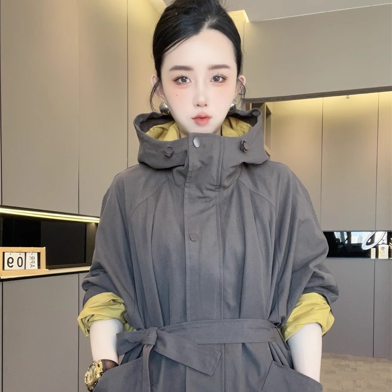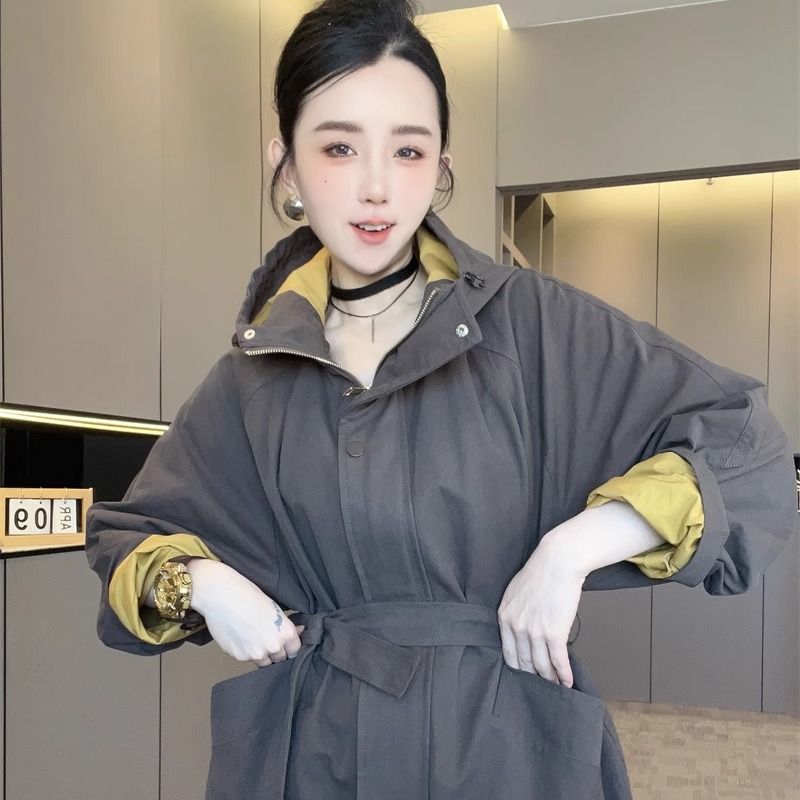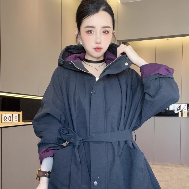 撞色冲锋衣外套女长袖连帽收腰显瘦中长款欧货上衣2025新款秋季潮
