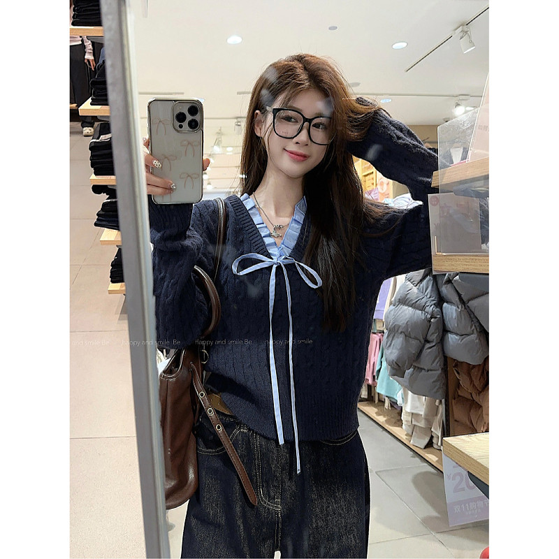 大码胖mm麻花毛衣女2026秋冬新款慵懒风假两件拼接高级感针织衫潮