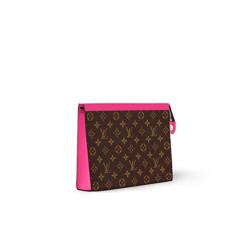 欧洲直邮LV/路易威登 Voyage MM男士玫瑰粉老花帆布拉链手拿包