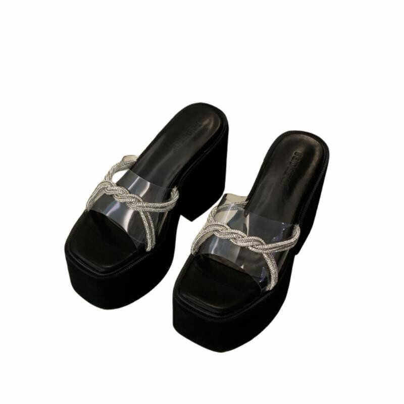 夏季水钻凉拖鞋女百搭坡跟防水台