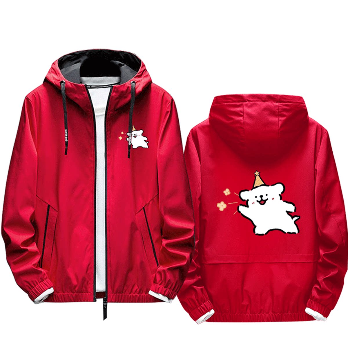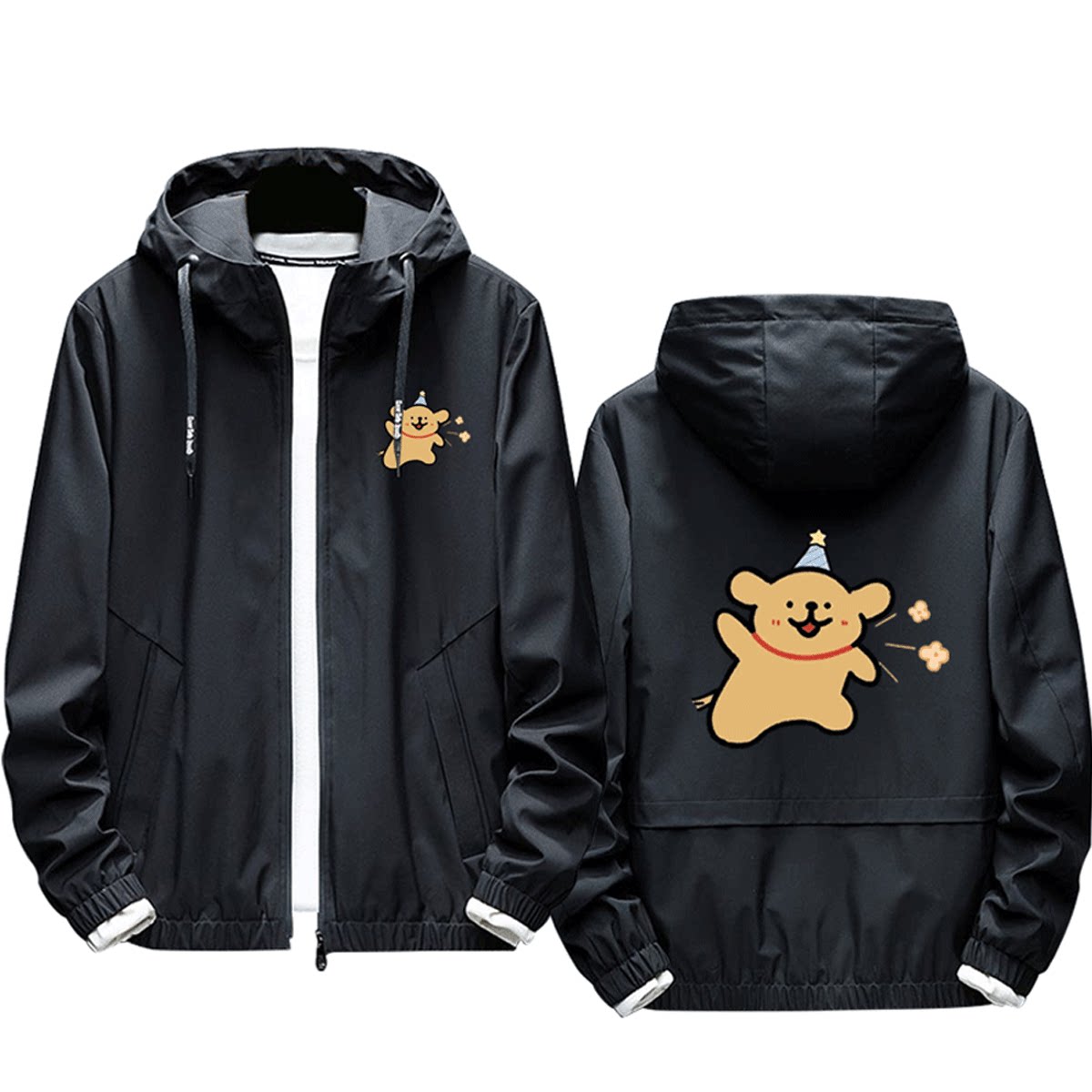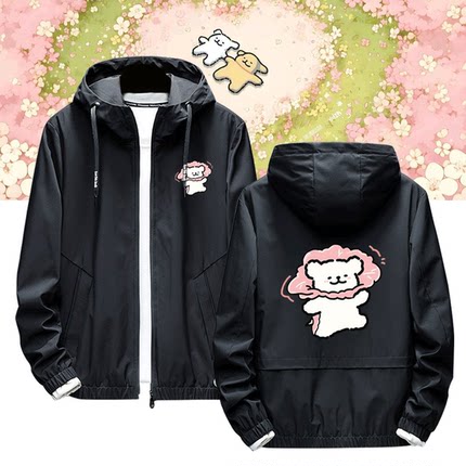 线条小狗花卉系列周边二次元卡通男女情侣休闲百搭可定制夹克外套