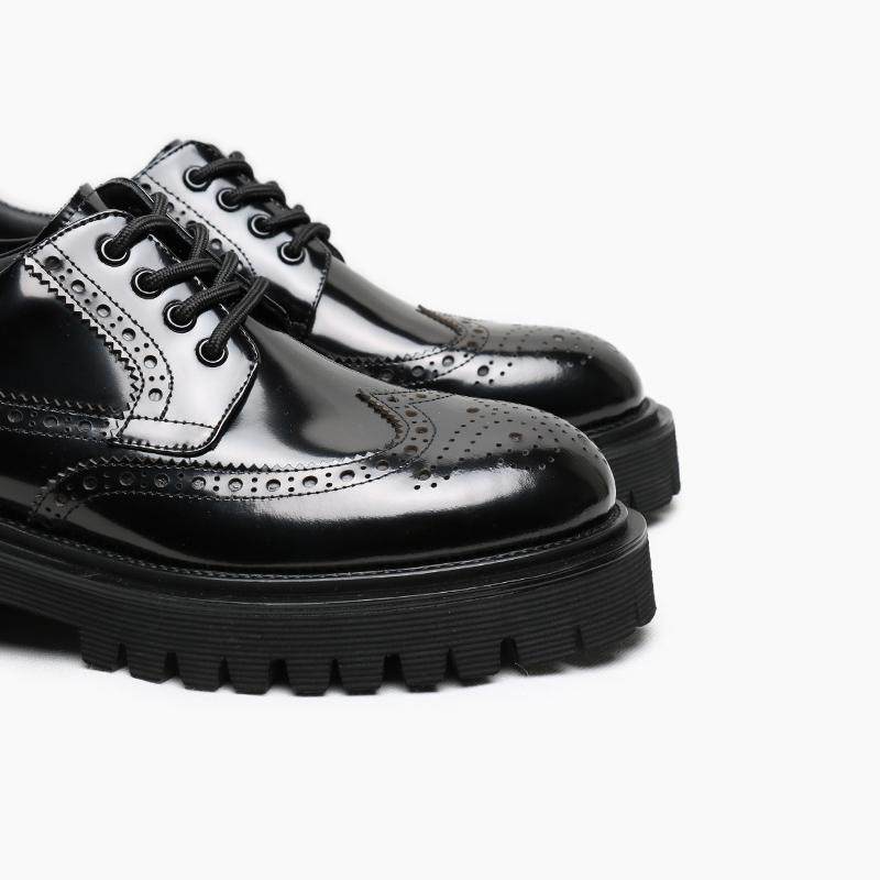 时尚亮皮布洛克轻质厚底休闲皮鞋