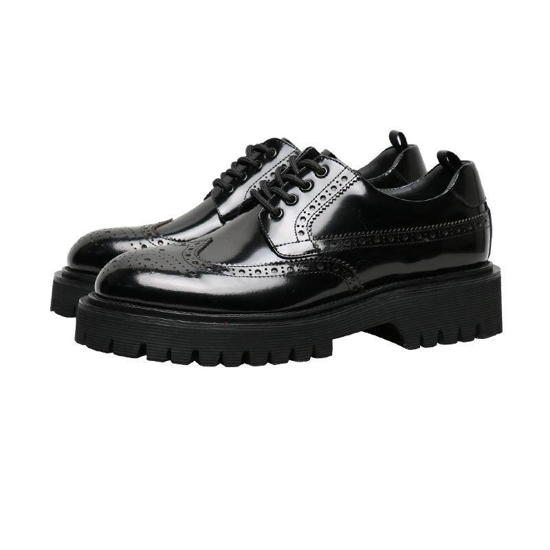优100英伦布洛克雕花亮皮男士潮流商务休闲皮鞋老爹鞋增高厚底黑