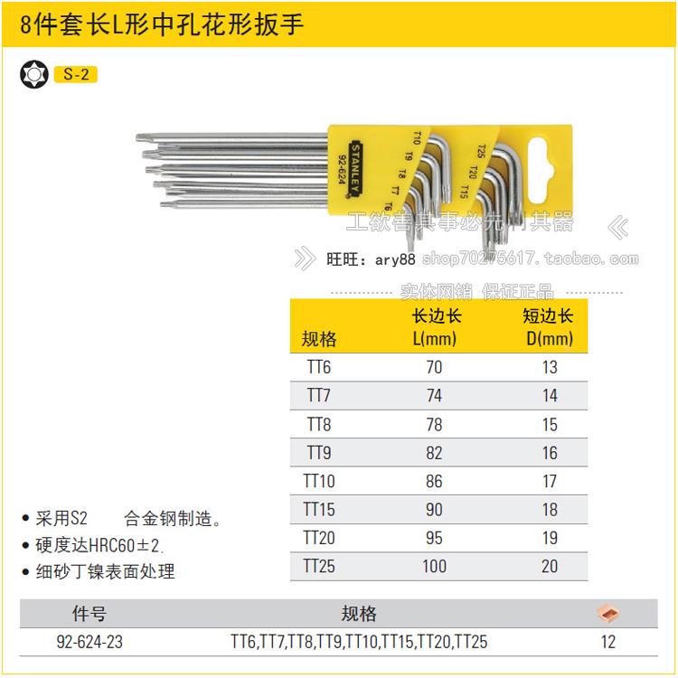 史丹利8/9件套梅花内六角扳手花型 中心带孔花形92-624/92-625-23