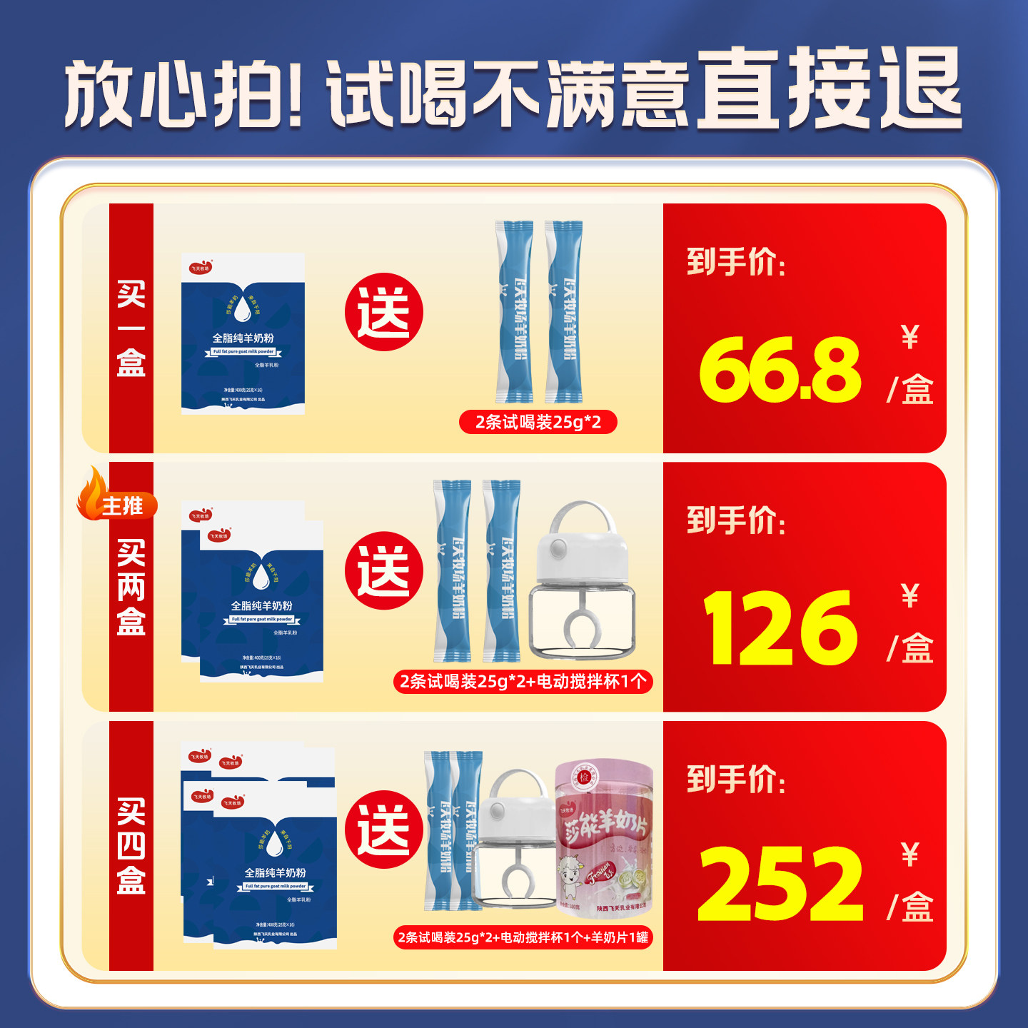 【纯羊奶粉】限时买1盒送2条试喝