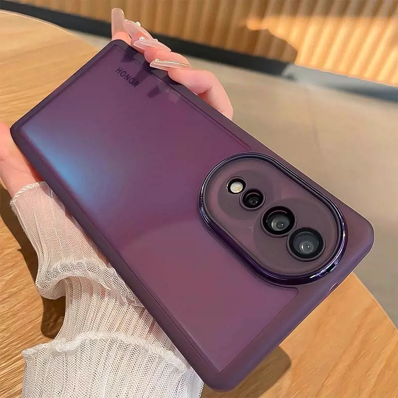 适用荣耀90手机壳磨砂边框荣耀80pro超薄防摔透明软硅胶荣耀70网红潮牌男女款荣耀90pro带镜头膜简约全包壳se