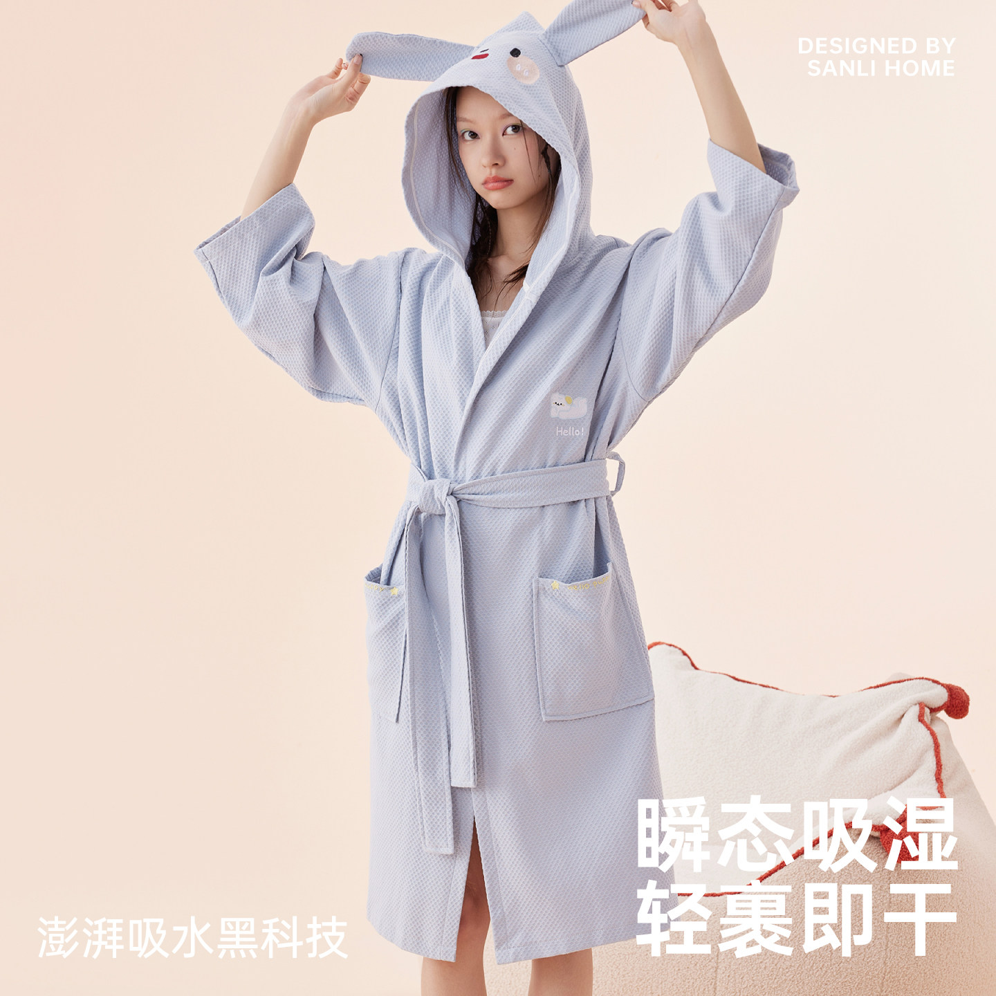 三利纯棉浴袍女吸水速干全棉浴衣