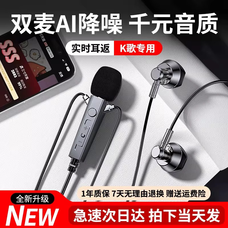 k歌耳机自带声卡专用有线唱歌麦克风手机录耳返适用苹果华为播设